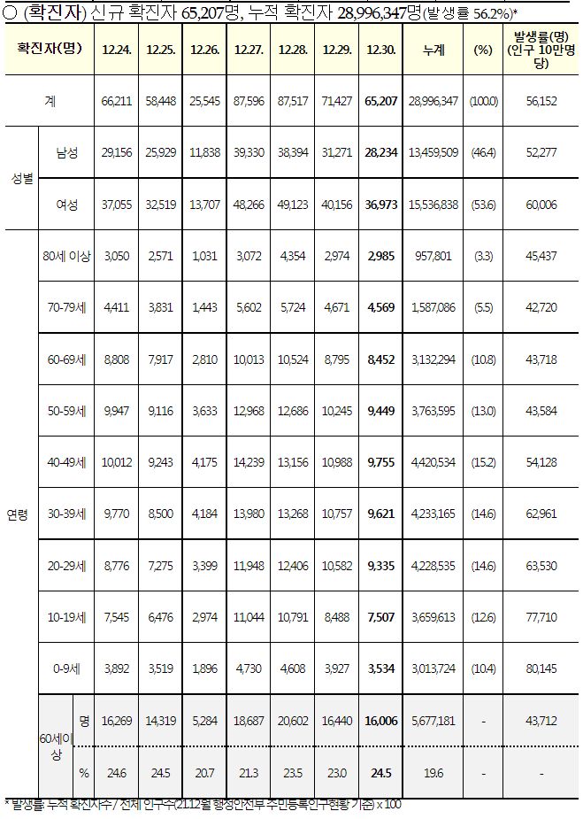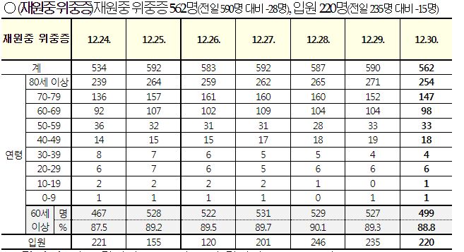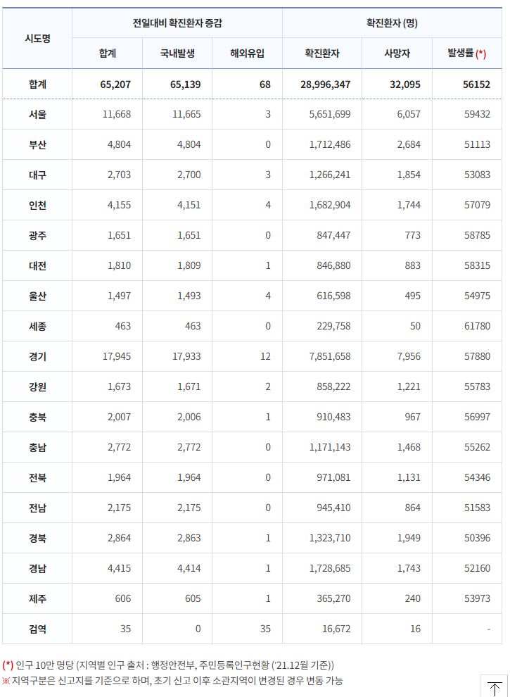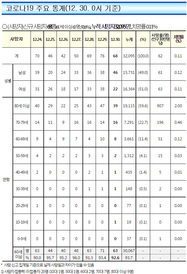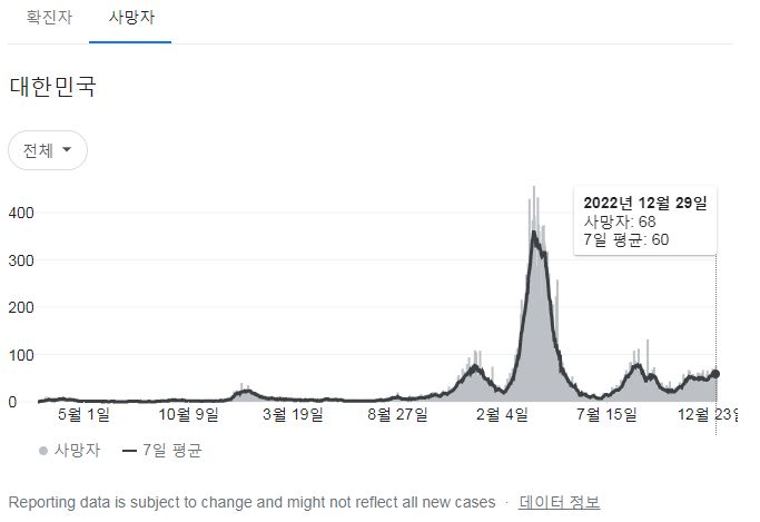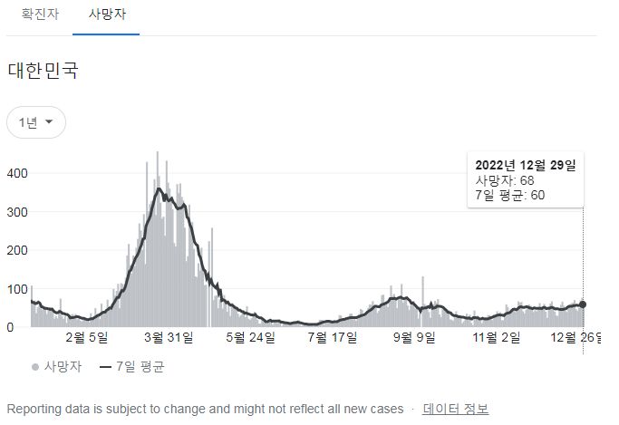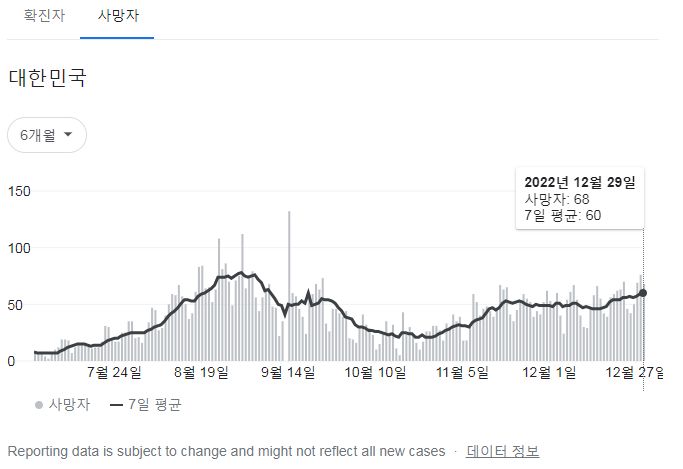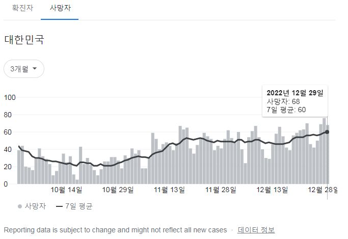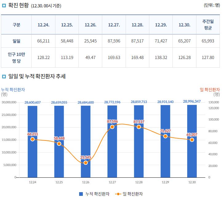 코로나19집계(2022.12.30. 0시기준): 확진 +6.5만, 사망 +68명, 중환자병상가동률 38% 본문