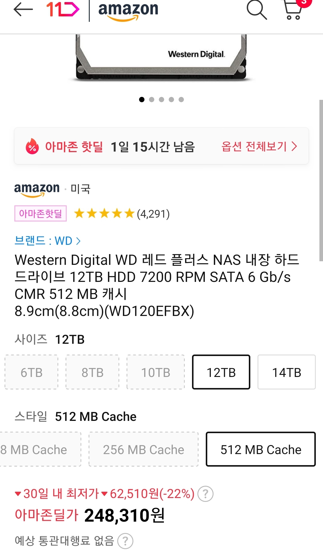 ㅡ 같은 상품페이지에 14TB 512MB캐시짜리도 있는데, 그것은 관세(통관대행료)가 붙어 우주패스비회원기준 30만원 조금 더 됩니다.