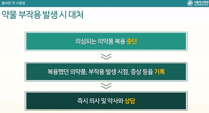 ㅡ 부작용 발생 즉시 의사 및 약사에게 알리기
