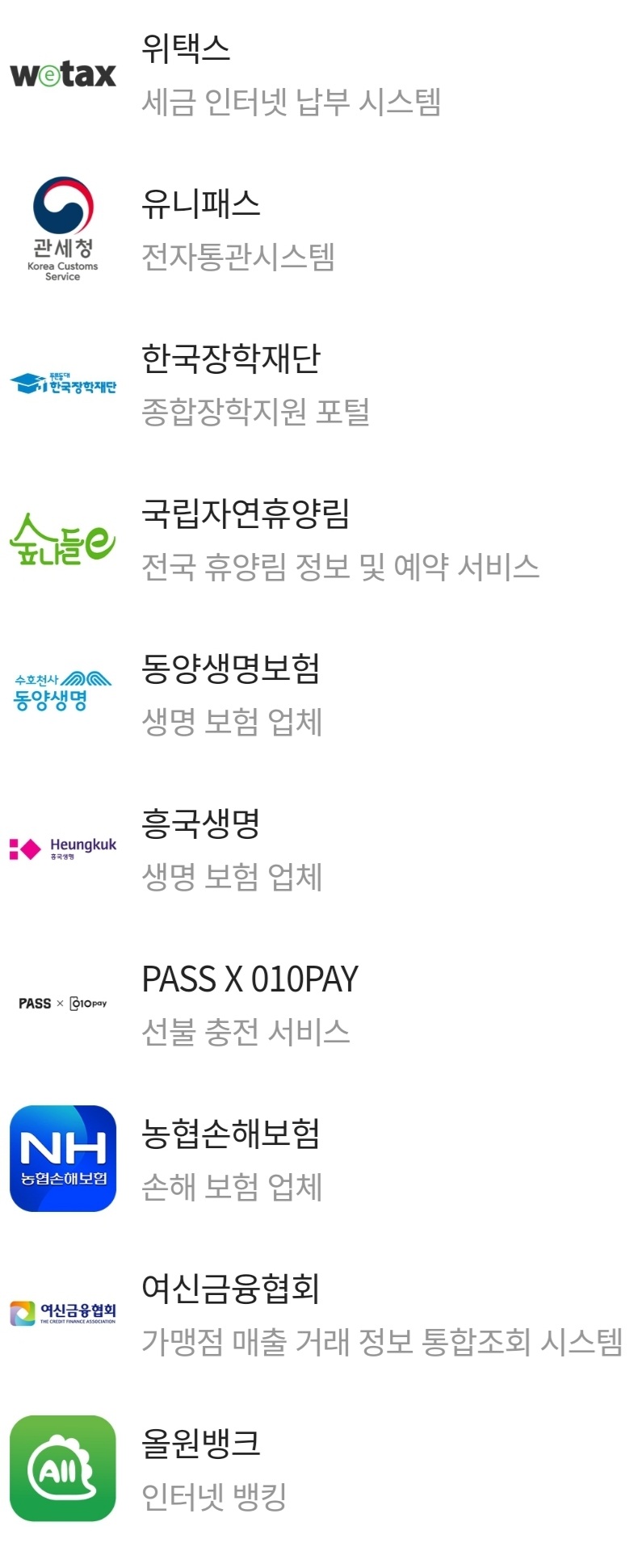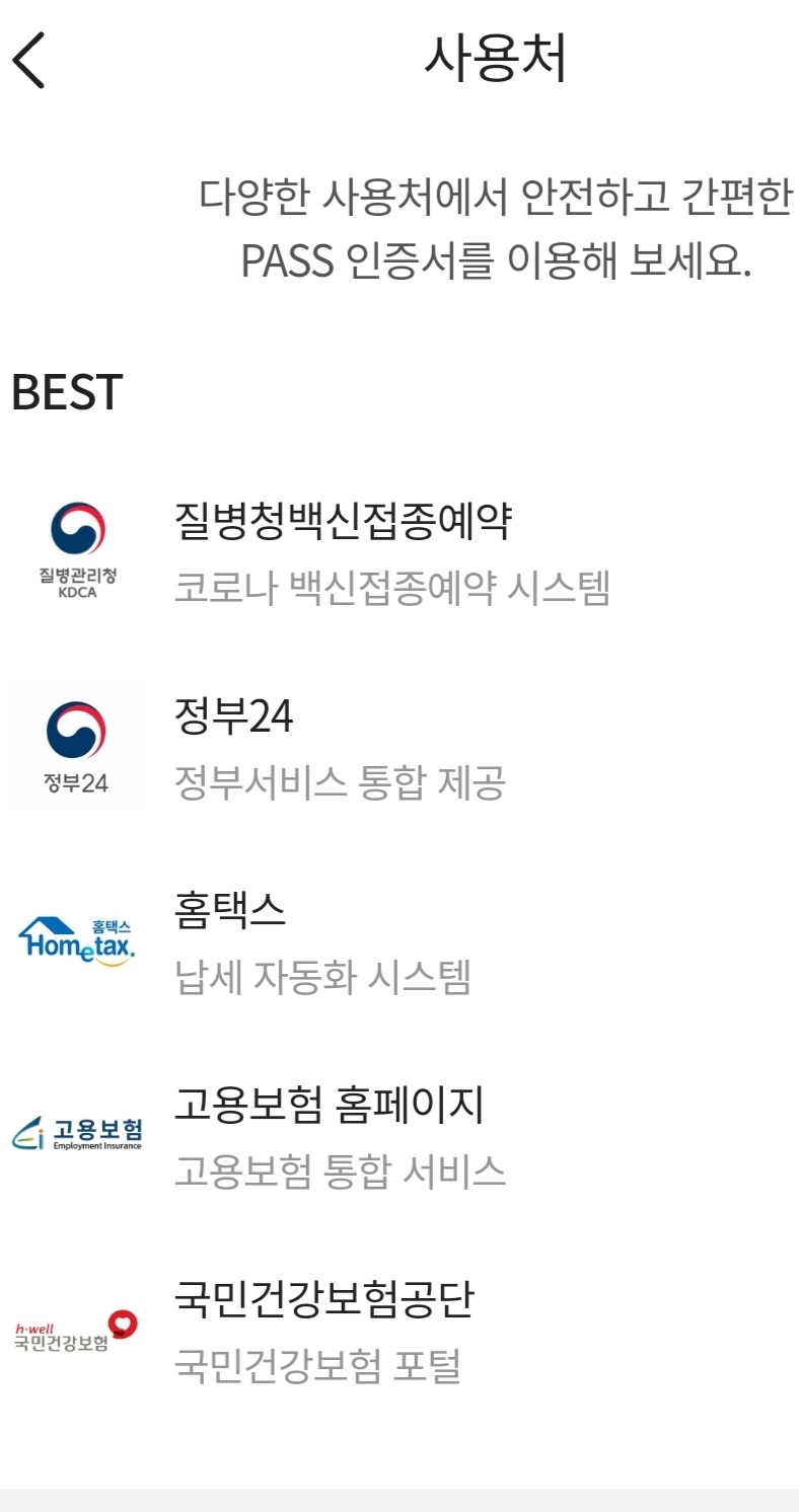 통신사 PASS 인증서 사용처 TOP 50 본문