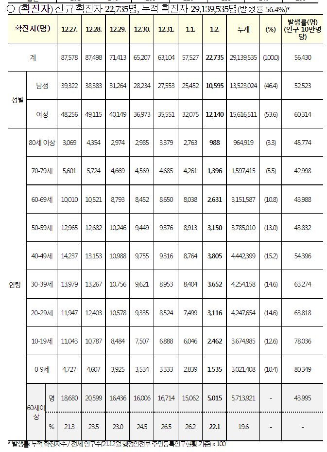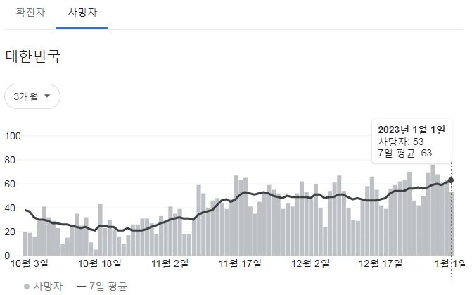코로나19집계(2023.1.2. 0시기준): 확진 +2.3만, 사망 +53명, 중환자병상가동률 40%★ 본문