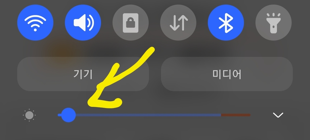 상단바를 내려 밝기조절 슬라이드를 호출해보죠.
