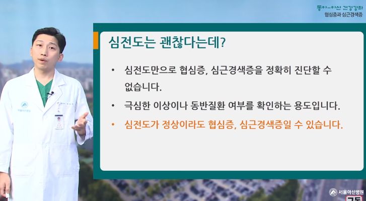심전도만 가지고 협심증이나 심근경색증을 알 수는 없다. 심전도는 정상일 수도 있다.
