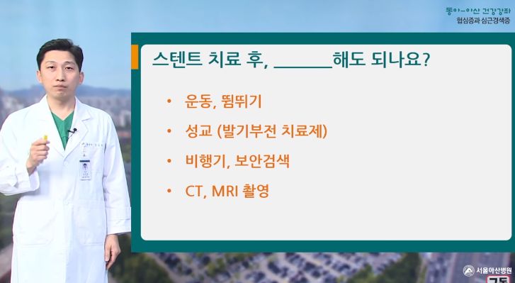 몸(혈관)안에 스텐트를 넣는 것은 잘 보고 해야 한다. 그래서 의사도 신중히 판단한다.
