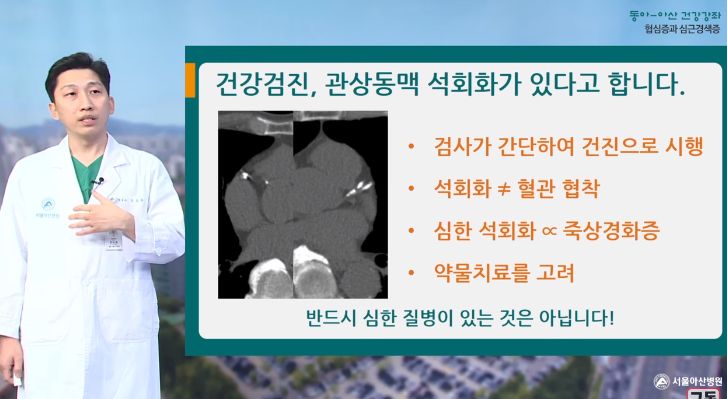 건강검진할 때 폐사진찍다가 관상동맥석회화를 발견하기도 한다.