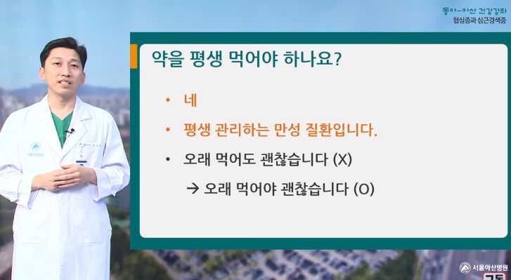 약은 평생 먹어야 한다. 동맥경화증(죽상경화증)은 평생 관리하는 만성질환이다.