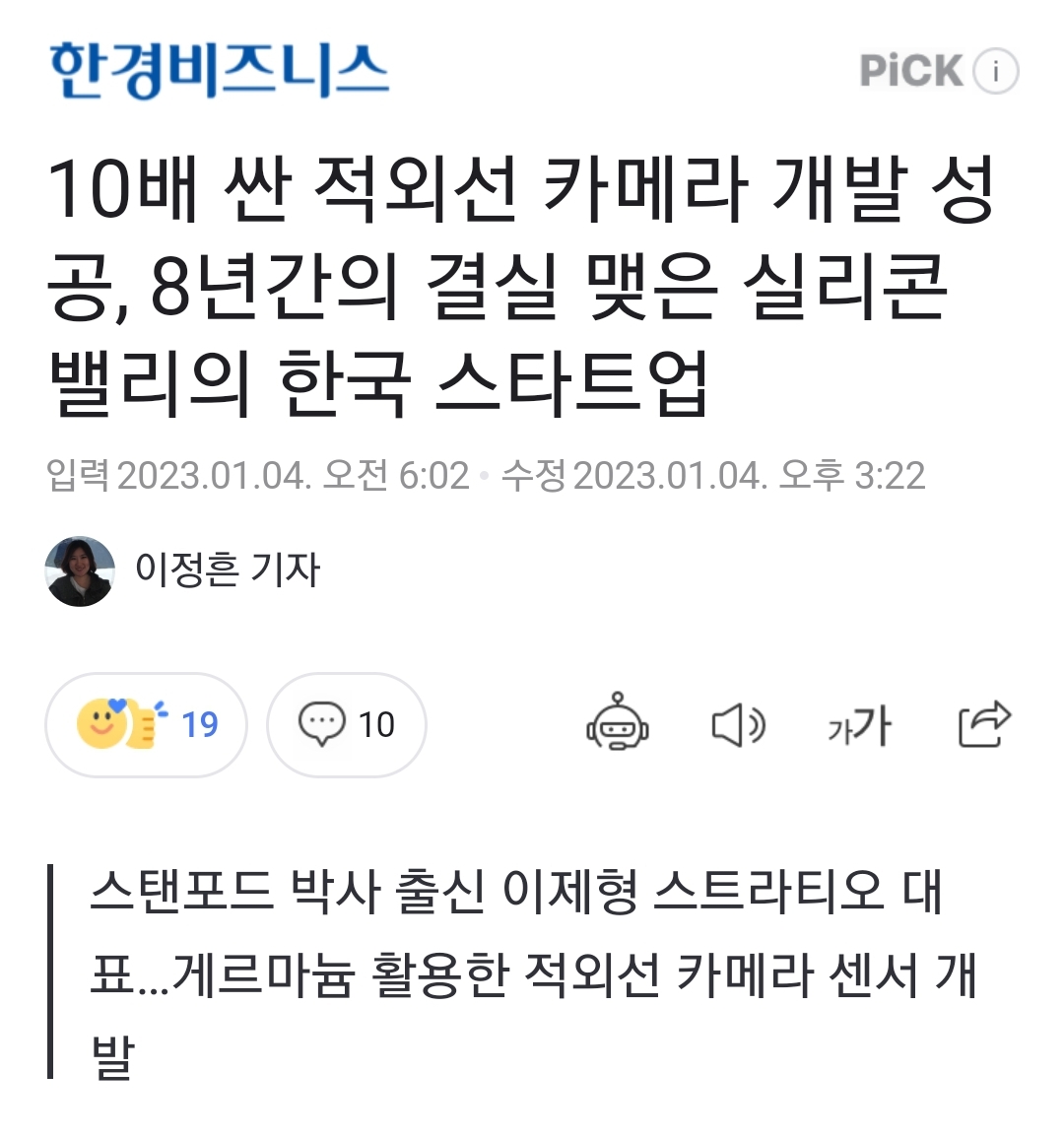 10배 싼 적외선 카메라 개발 성공, 8년간의 결실 맺은 실리콘밸리의 한국 스타트업