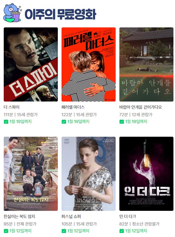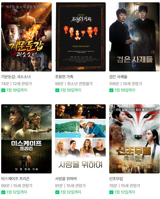 | (네이버시리즈온 무료영화) 바람아 안개를 걷어가다오, 검은 사제들, 조용한 가족, 시절인연 등 (0) | 2023.01.13 |