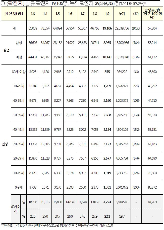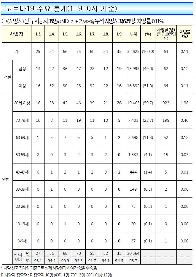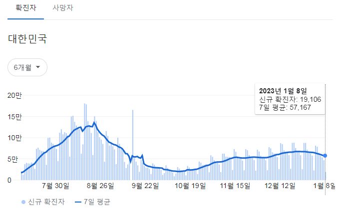 코로나19집계(2023.1.9. 0시기준): 확진 +1.9만, 사망 +35명, 중환자병상가동률 40% 본문