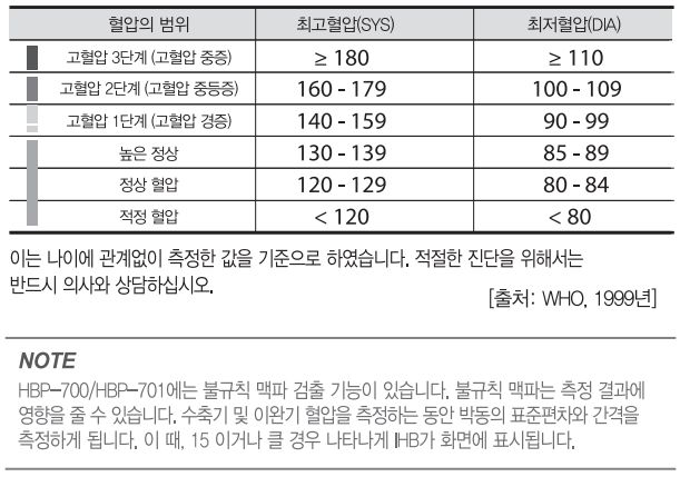 이 혈압계가 참고하는 기준이라는 듯. 보통은 숫자만 보니까 상관없지만.