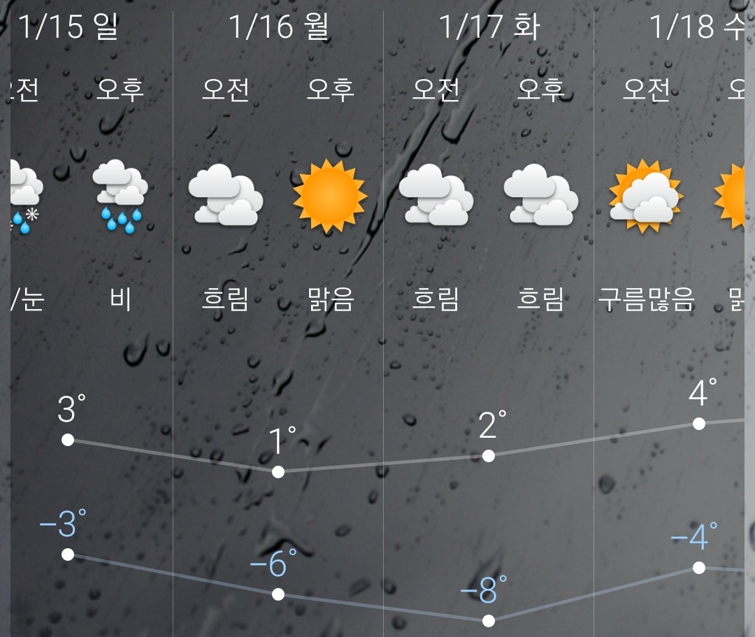 내일까지는 괜찮지반 모래부터는 조금씩 내려가는 추세. 그래도 서울대전을 기준으로, 겨울치고는 그냥저냥인데..