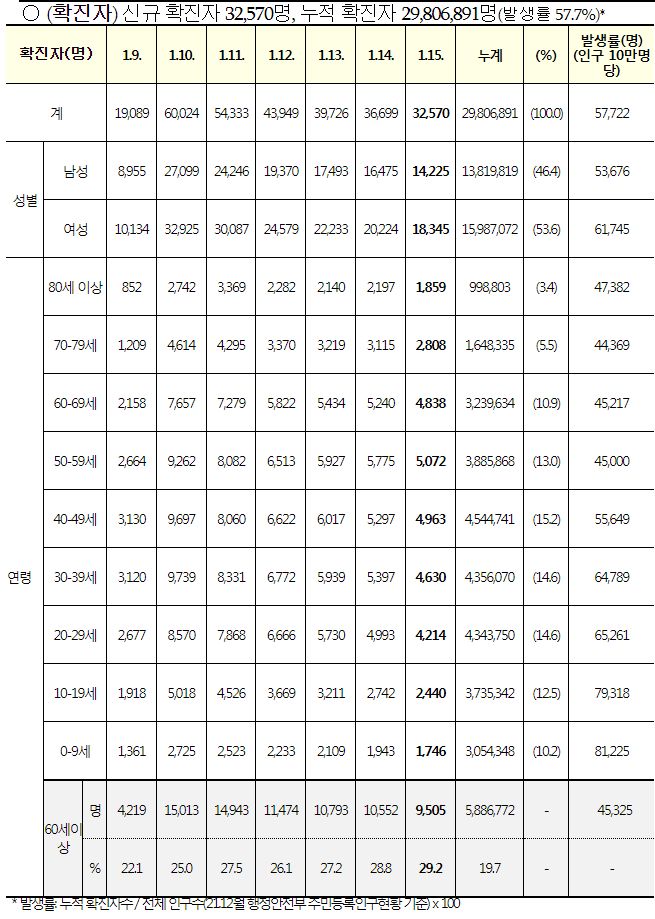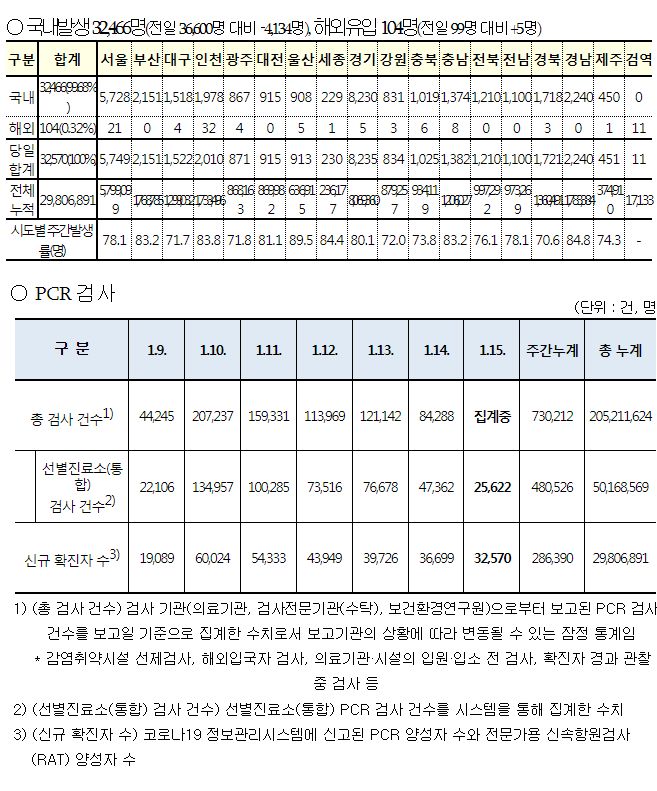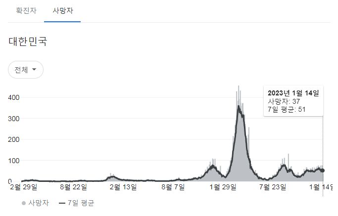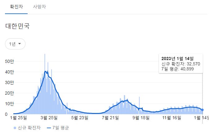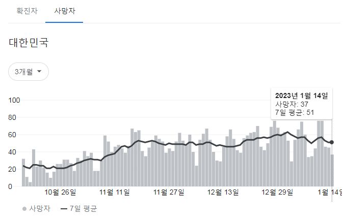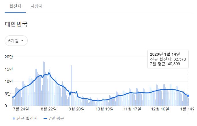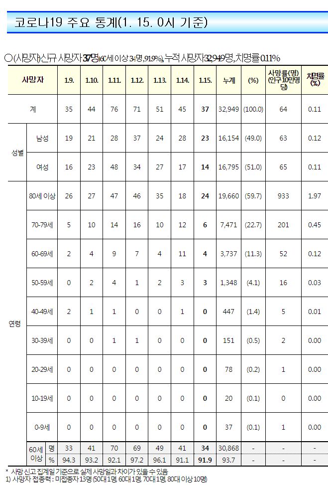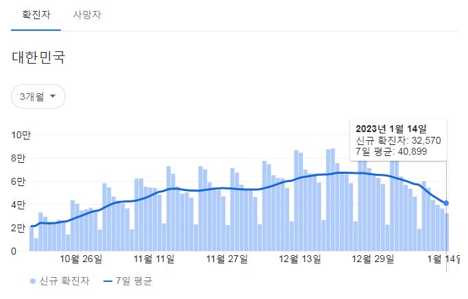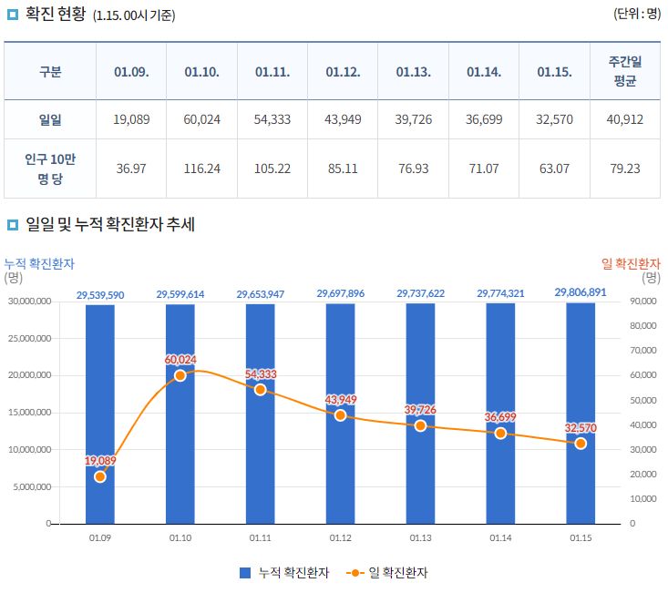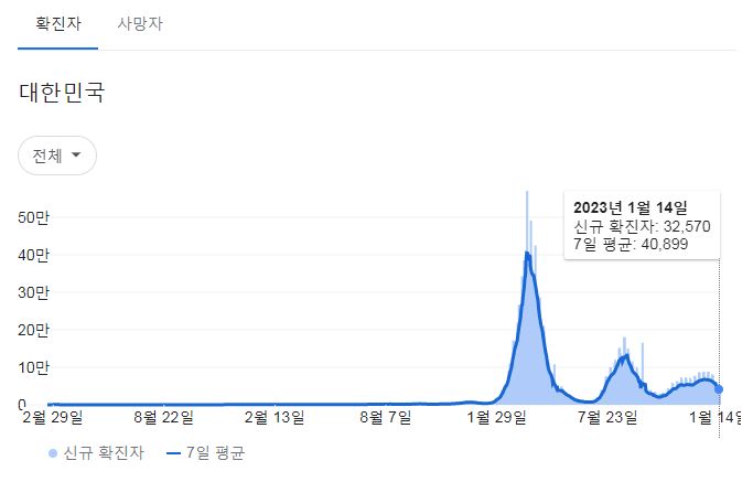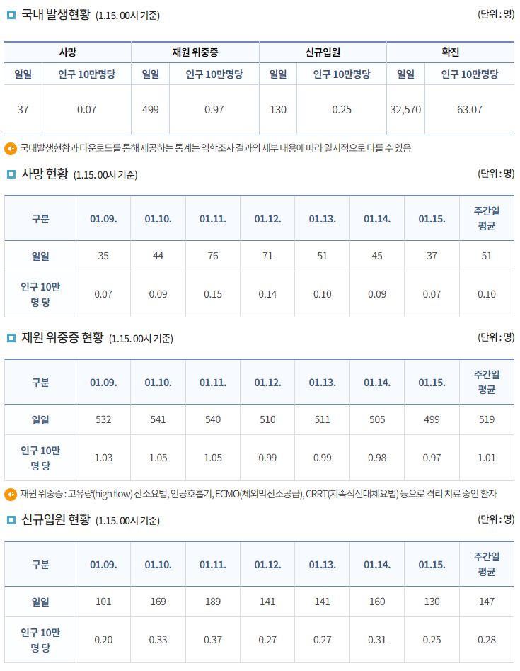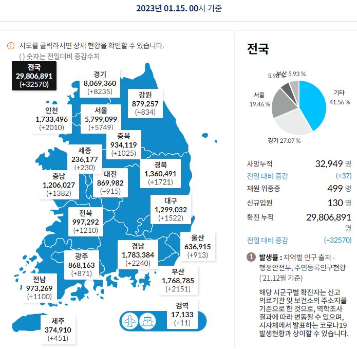 코로나19집계(2023.1.15. 0시기준): 확진 +3.3만, 사망 +37명, 중환자병상가동률 35% 본문