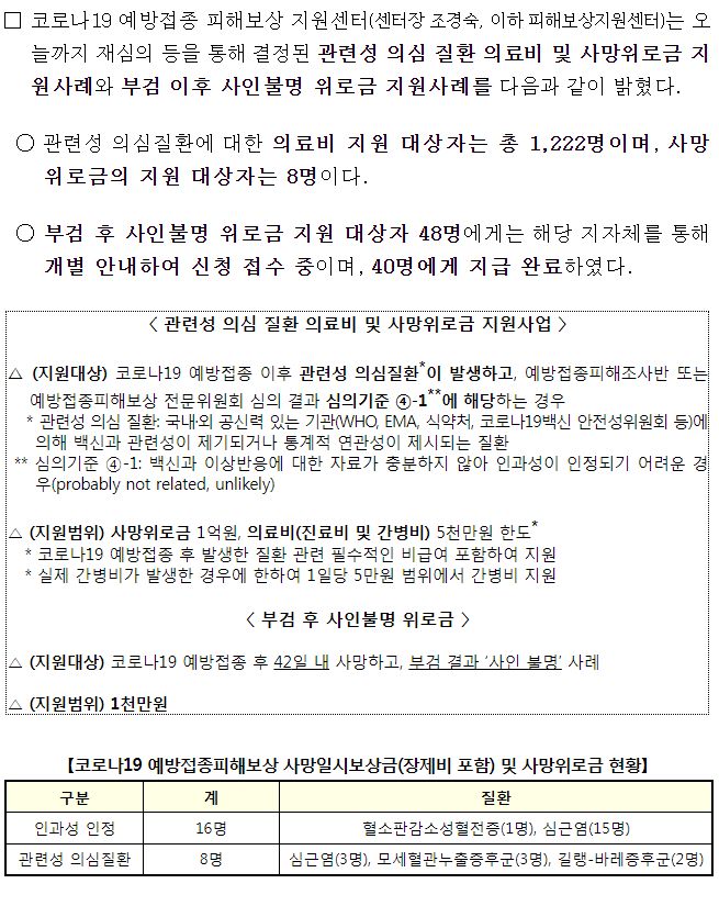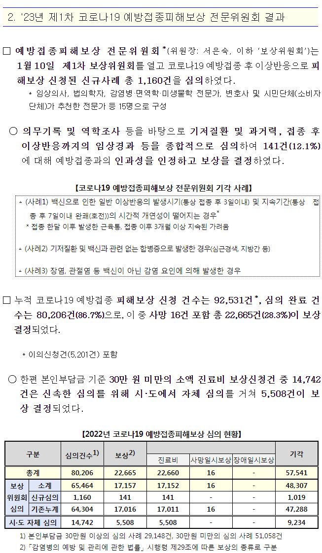 '23년 제1차 코로나19 예방접종피해보상 전문위원회 결과(2023.1.12) 본문