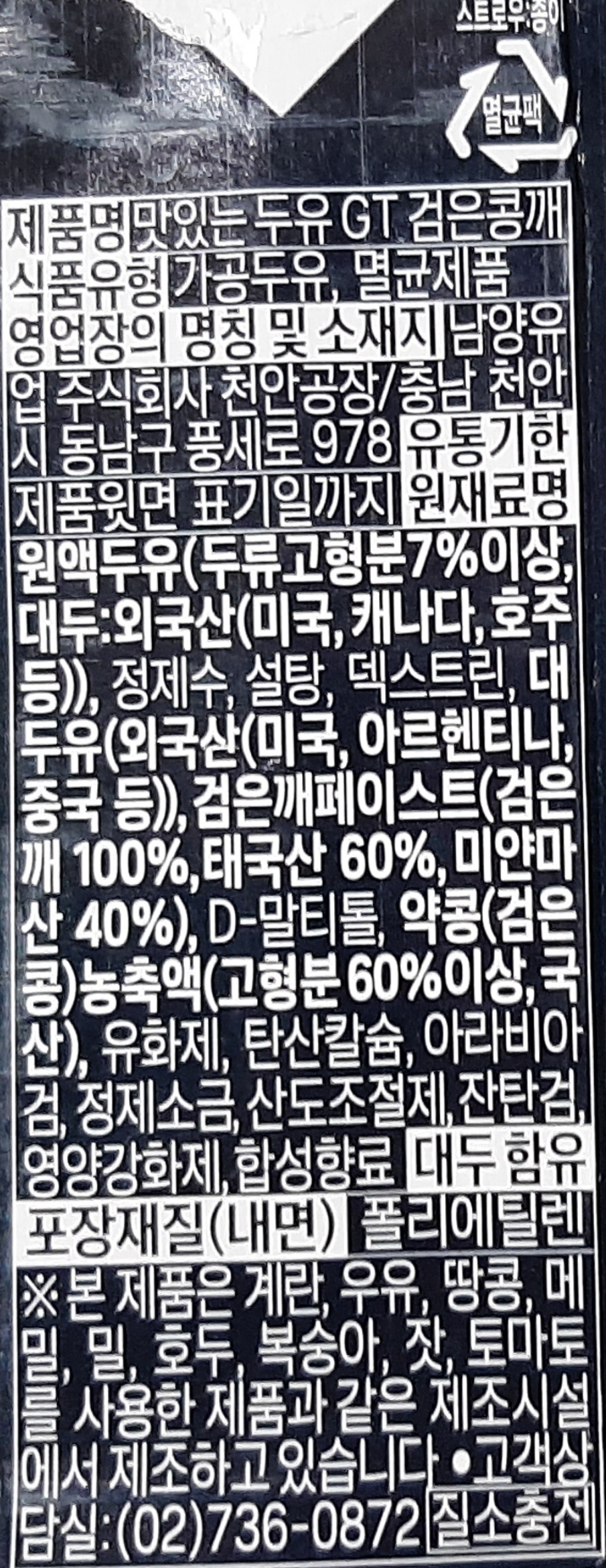 남양 맛있는 두유GT 검은콩·깨 칼슘 본문