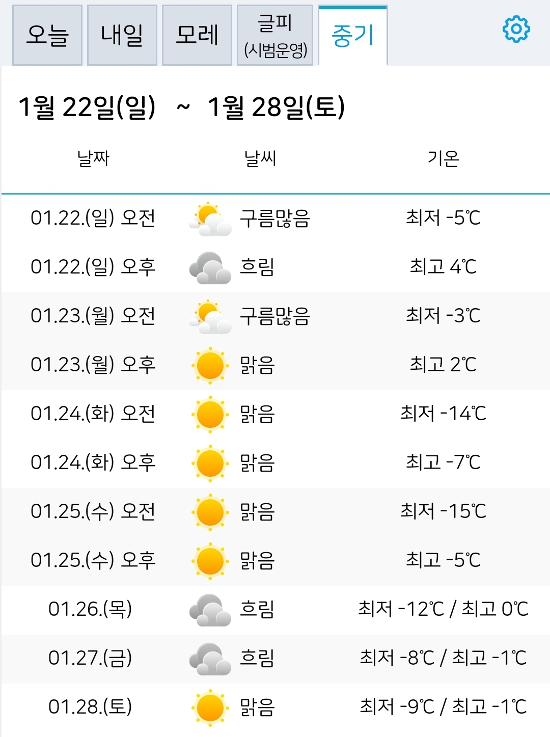 | 2023.1월 중순 날씨: 기온이 다시 내려갑니다 (0) | 2023.01.14 |