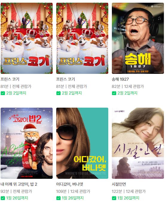 (네이버시리즈온 무료영화) 효자동 이발사, 새벽의 황당한 저주, 프린스 코기, 송해 1927, 내 어깨 위 고양이 밥2 등 본문
