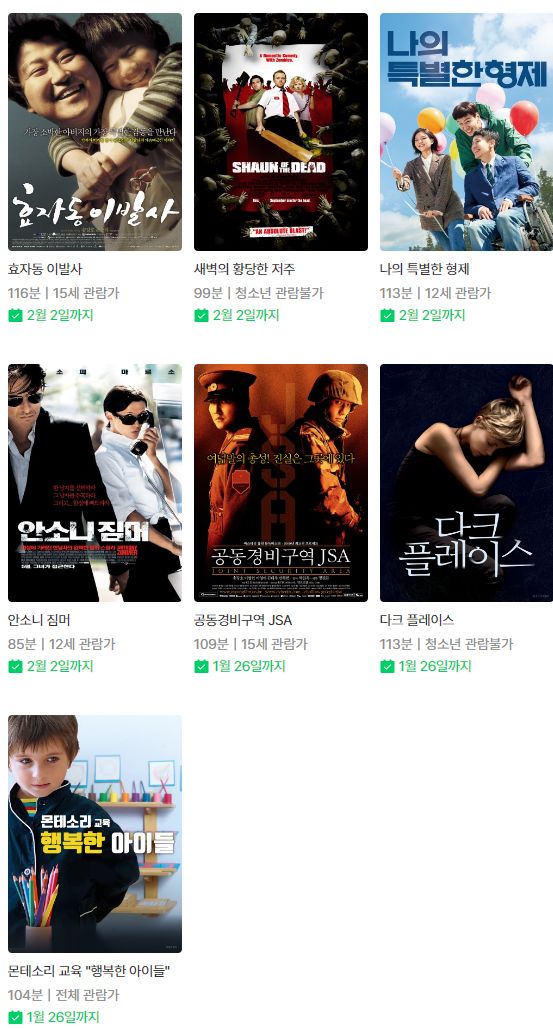 | (네이버시리즈온 무료영화) 더 스파이, 바람아 안개를 걷어가다오, 조용한 가족, 검은 사제들 등 (0) | 2023.01.06 |