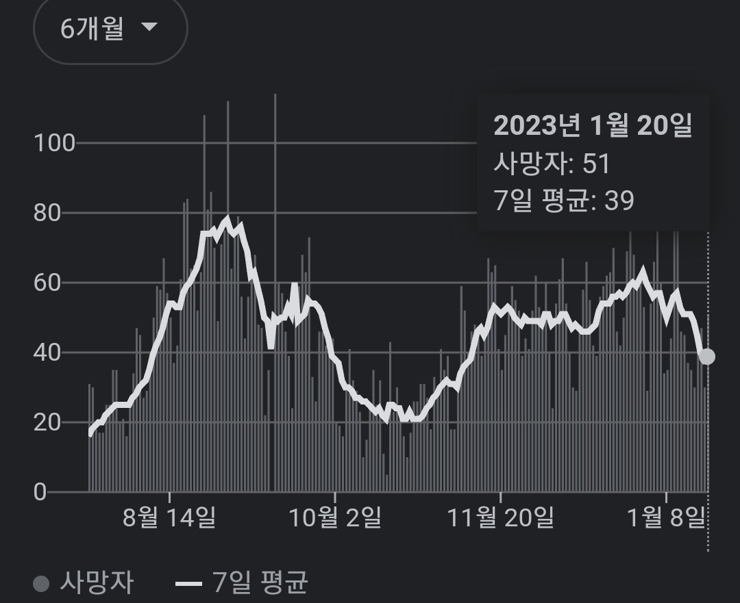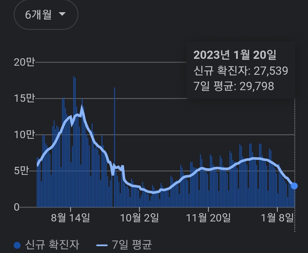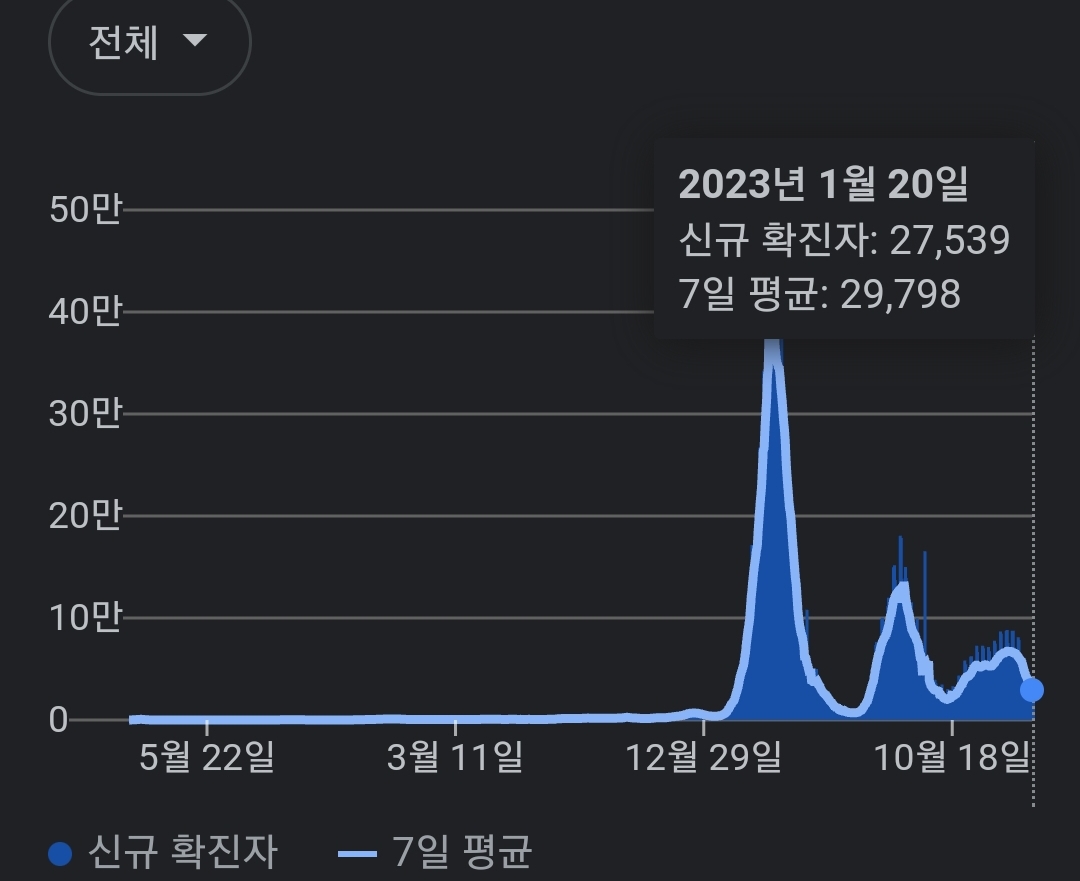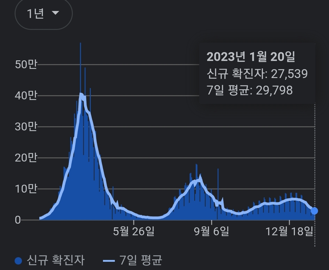 | 코로나19집계(2023.1.23. 0시기준): 확진 +9천, 사망 +26명, 중환자병상가동률 30% (0) | 2023.01.23 |