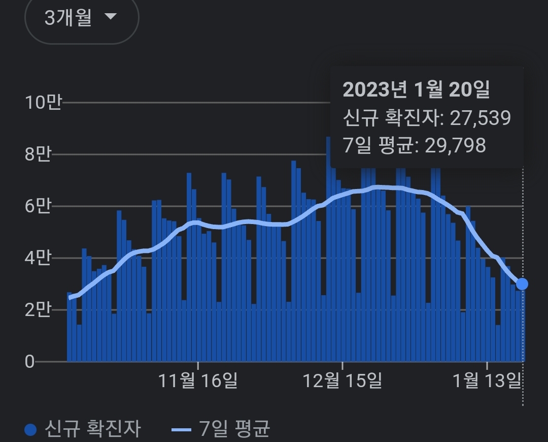 | 코로나19집계(2023.1.20) 확진 +2.7만 ★ , 사망 +30명, 중환자병상가동률 29% (0) | 2023.01.20 |