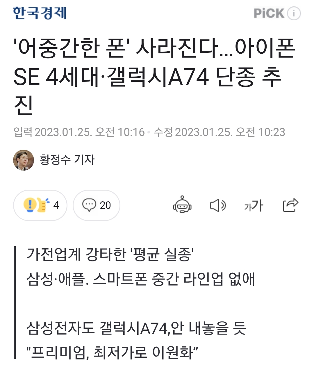 '어중간한 폰' 사라진다…아이폰SE 4세대·갤럭시A74 단종 추진
