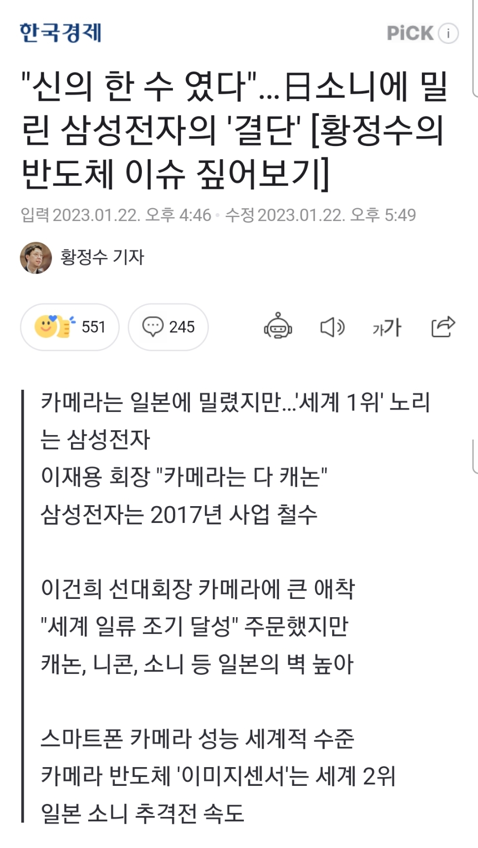 "신의 한 수 였다"…日소니에 밀린 삼성전자의 '결단' [황정수의 반도체 이슈 짚어보기]