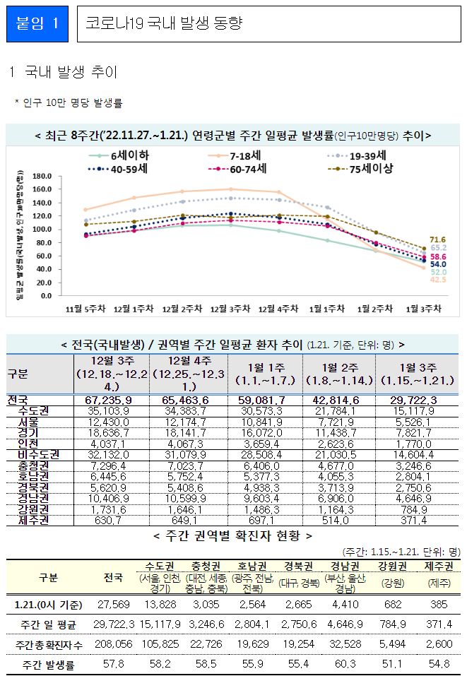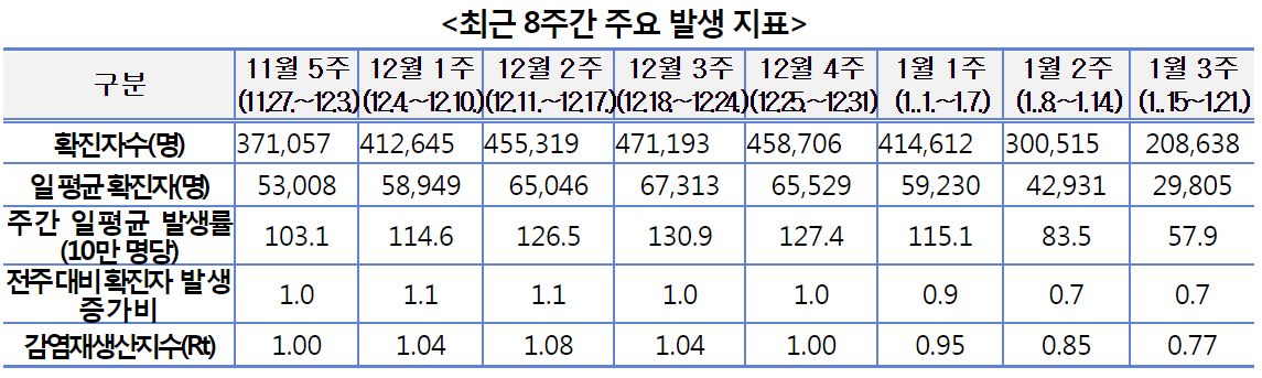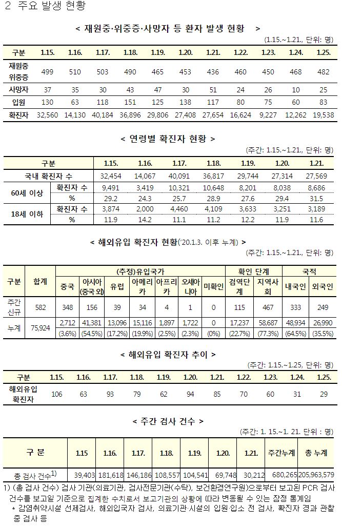 코로나19 주간 발생 동향(1. 15.∼1. 21.)