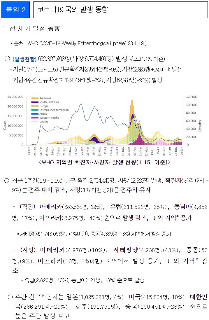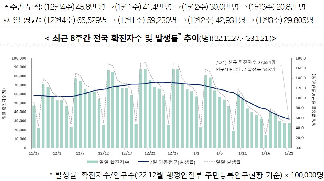 코로나19(2023.1.25) 주간 확진자 전주 대비 30.6% 감소 본문