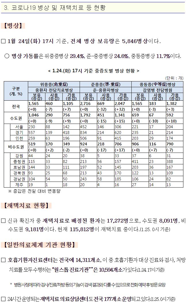 재택치료 환자수는 1월 25일 0시기준 약 11.6만 명.