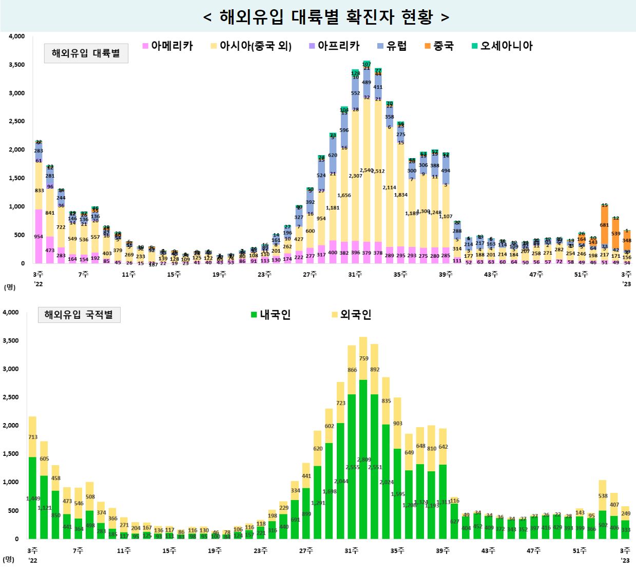 * (국내감염 검출률) 12.4주 0.2% → 1.1주 0.1% → 1.2주 0.4% → 1.3주 0.1%