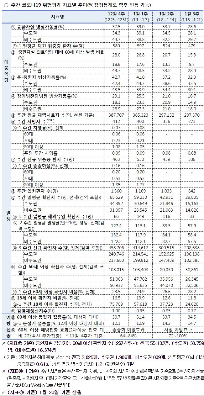 코로나19 주간 위험도 평가(1. 15.∼1. 21.)
