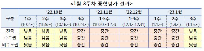 - 주간 위험도 전국, 수도권, 비수도권 모두‘낮음’으로 조정 -