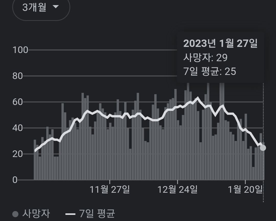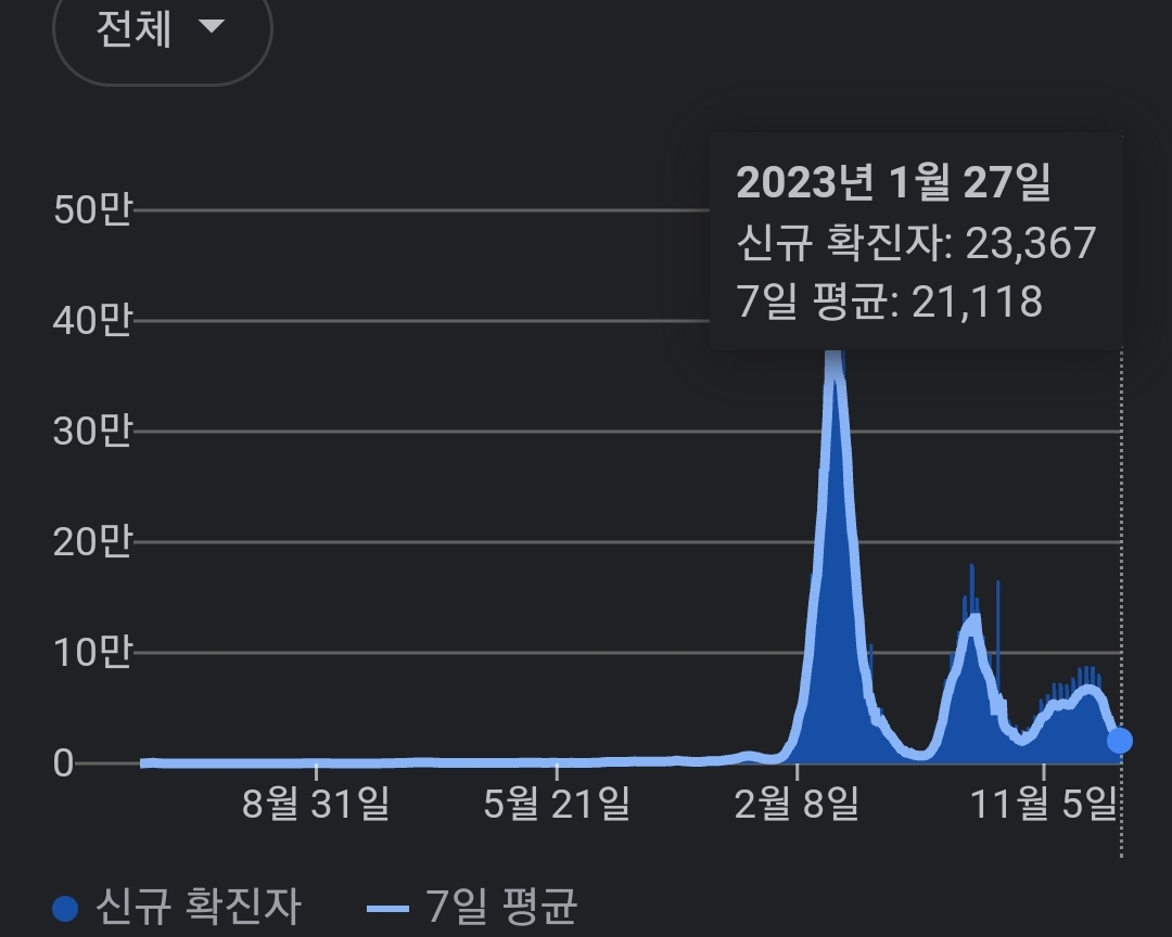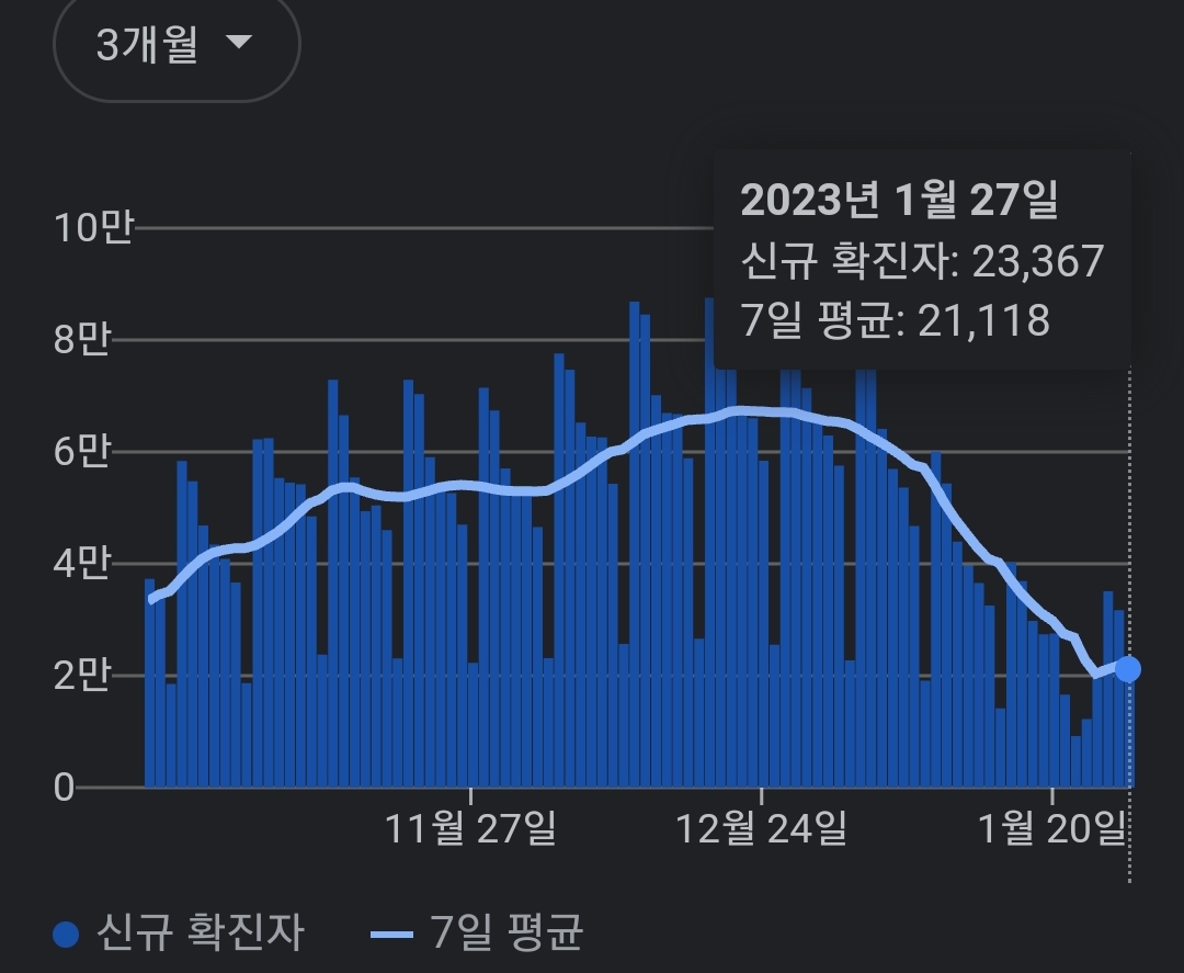 | 코로나19집계(2023.1.27. 0시기준) 확진 +3.2만, 사망 +36명, 중환자병상가동률 25% (0) | 2023.01.28 |