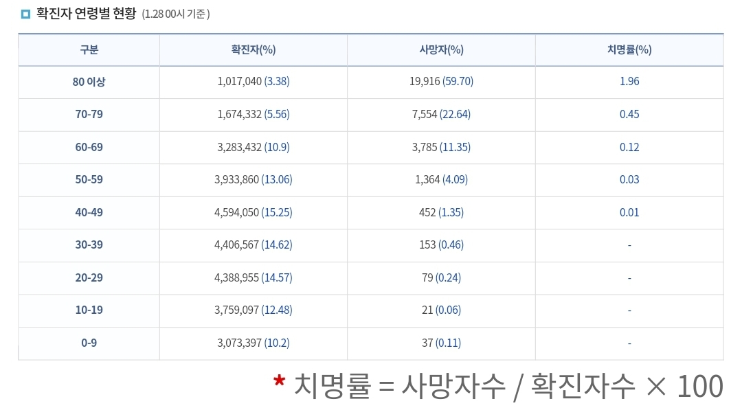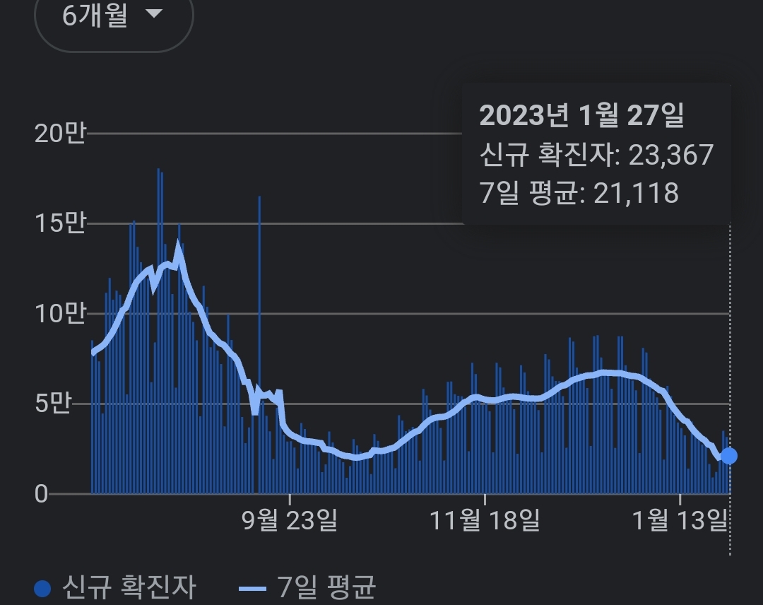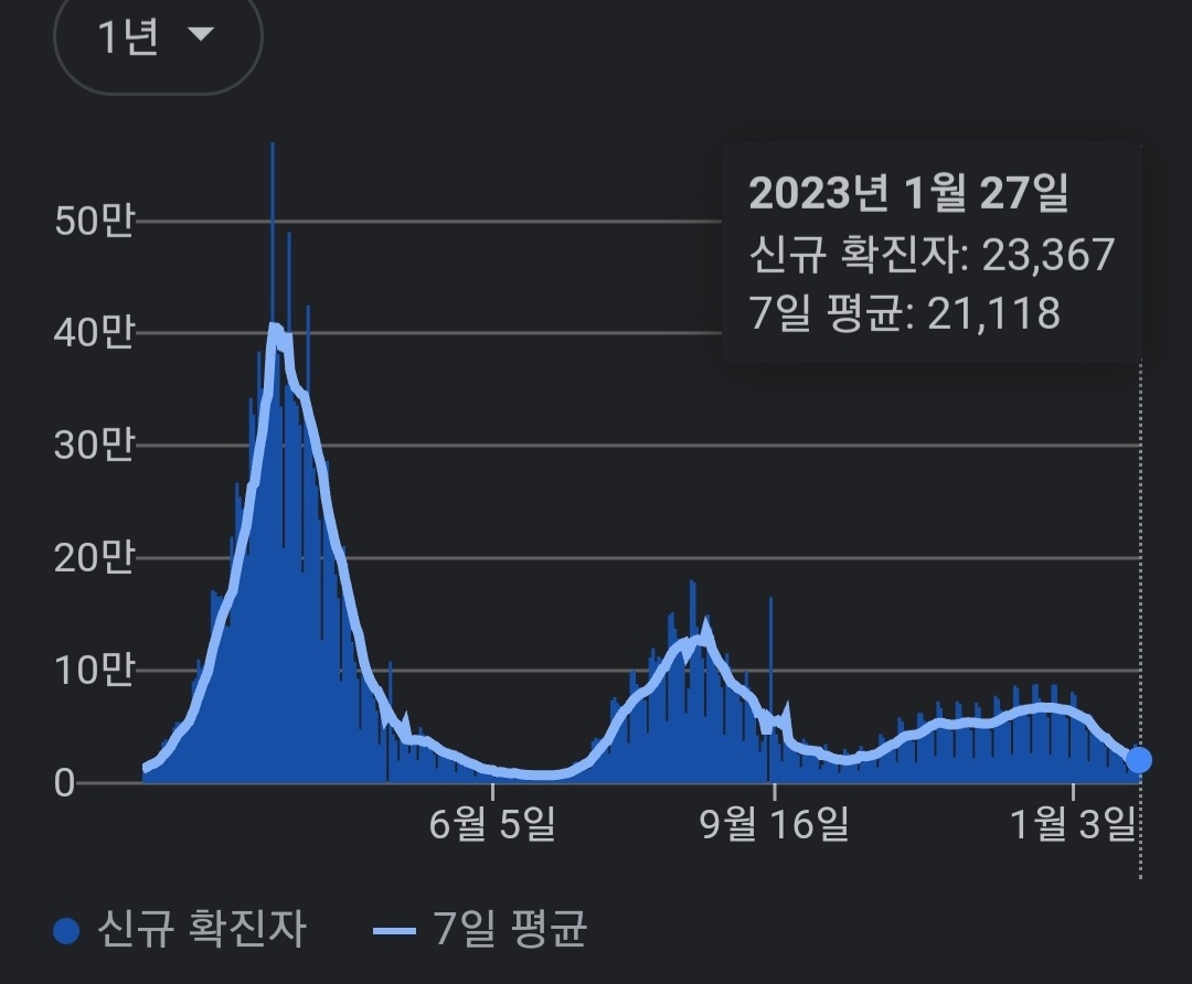 | 코로나19집계(2023.1.26. 0시기준): 확진 +3.5만, 사망 +26명, 중환자병상가동률 27%/:/ 60대 예방접종 권고 (0) | 2023.01.26 |
