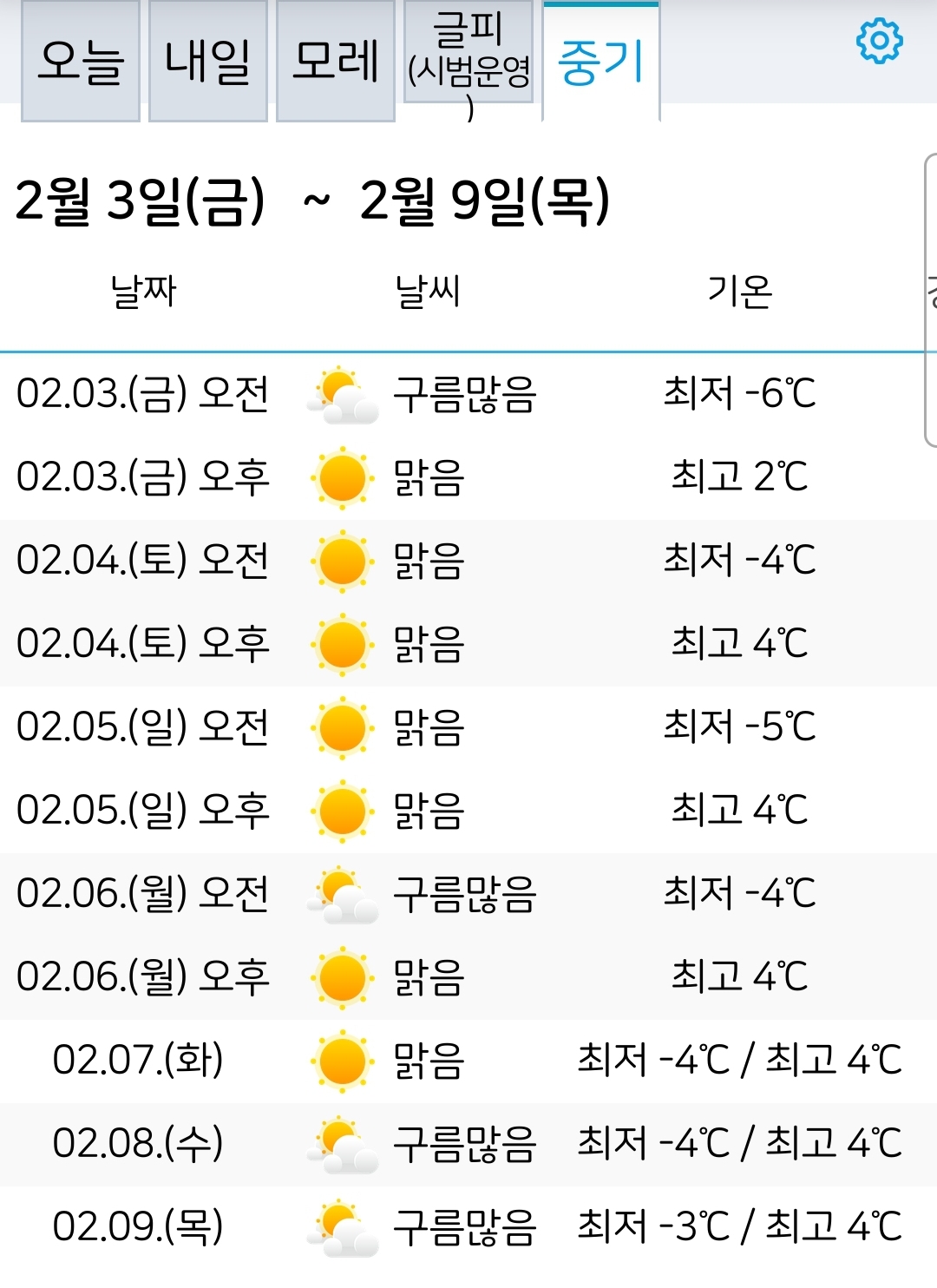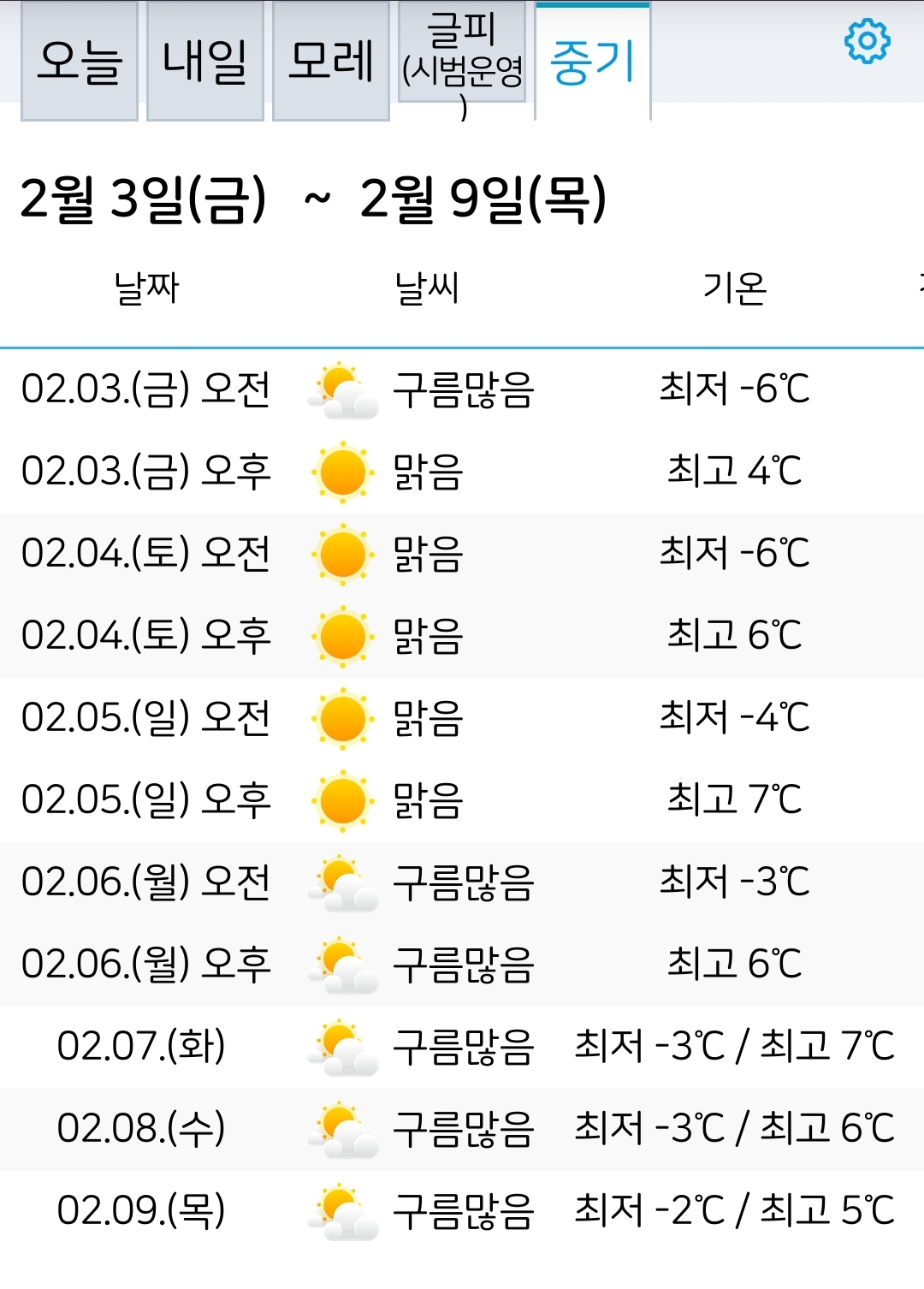 2023.1.31~2.9. 서울대전 일기예보 본문