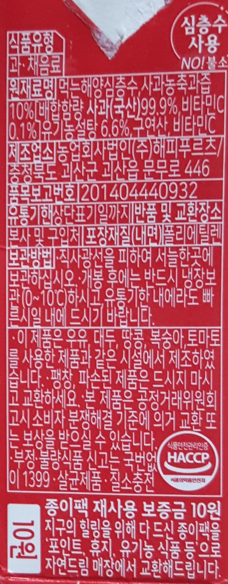 "종이팩 재사용보증금 10원"이라는 구절이 이채롭네요. 우유팩이나 다른 팩음료에도 있는지 찾아볼까..