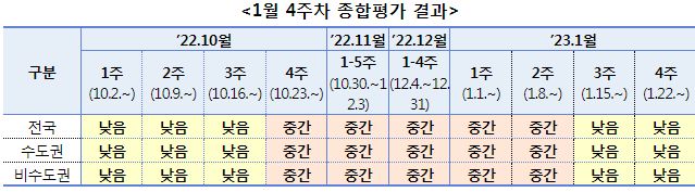 코로나19 주간 위험도 평가(1. 22.∼1. 28.): "낮음"