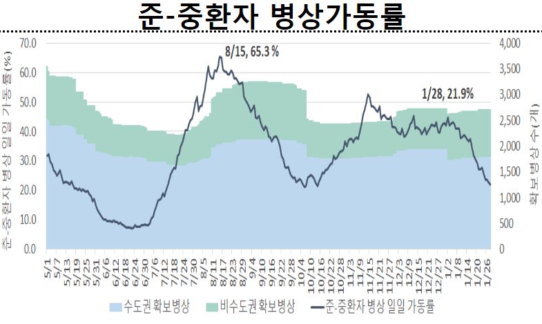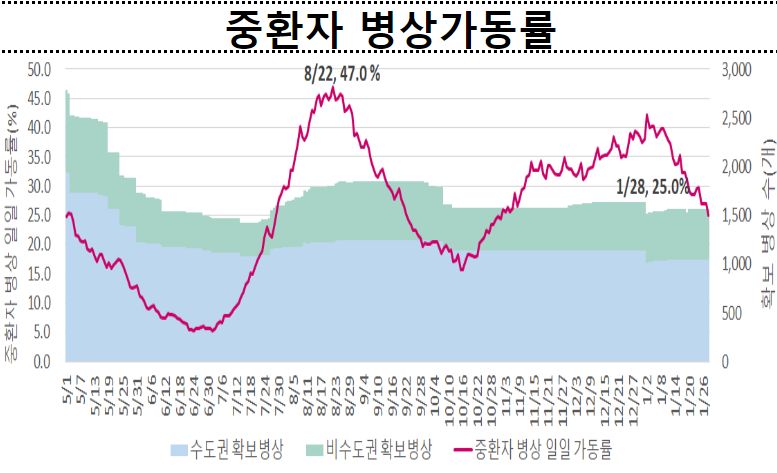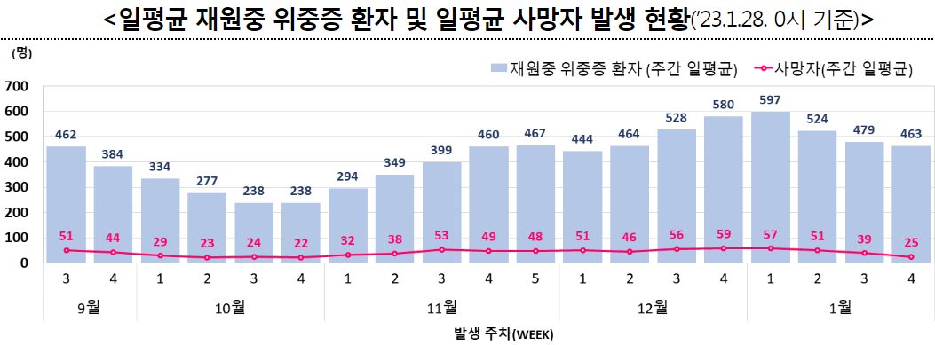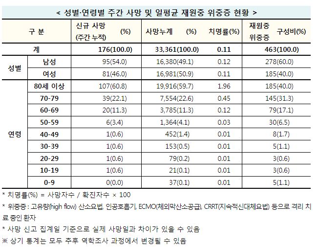 ※ 일평균 재원중 위중증 환자 중 50세 이상 439명(94.8%), 일평균 사망자 중 50세 이상 25명(100.0%)"
