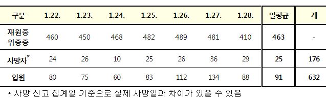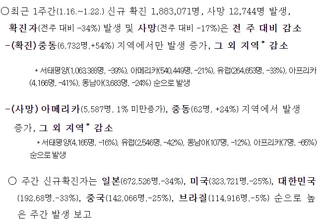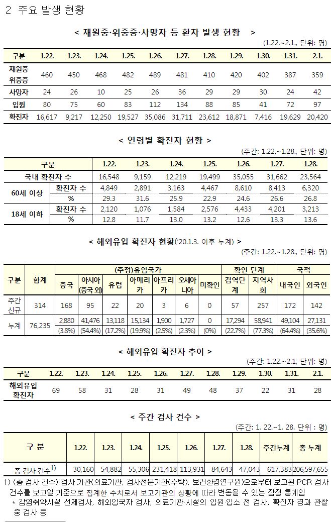 코로나19 주간 발생 동향(1. 22.∼1. 28.)