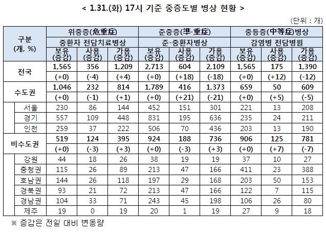 코로나19 병상 및 재택치료 등 현황