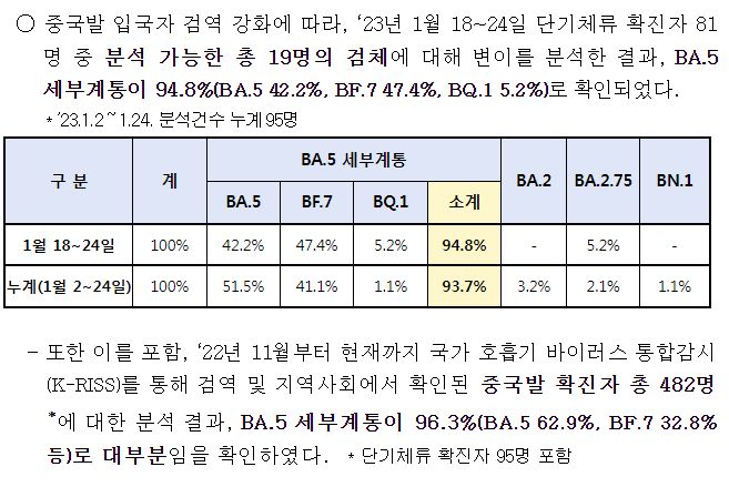 ㅡ "중국발 입국자의 양성률이 낮아진 데는 입국 전후 검사의 효과가 대단히 컸다고 본다. 지금의 수치가 중국 내 유행 감소를 의미하는 것인지는 추가 데이터를 더 확인할 필요가 있다."