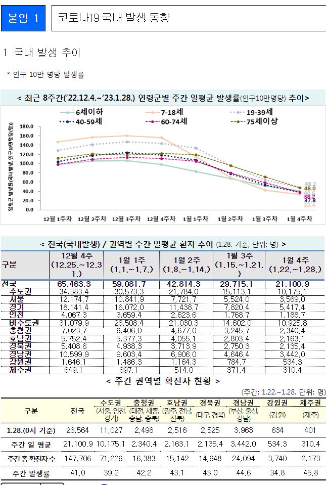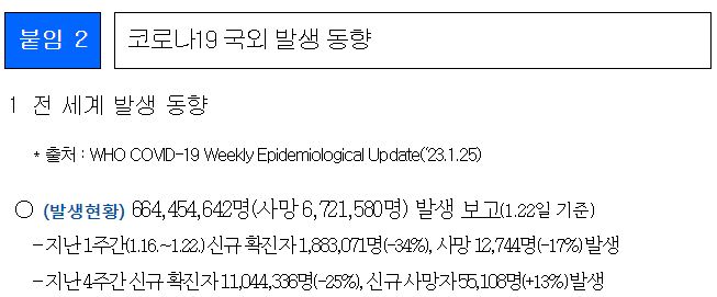 코로나19(2023.2.1) 주간 발생 동향 및 위험도 평가(1.22~28.) 본문