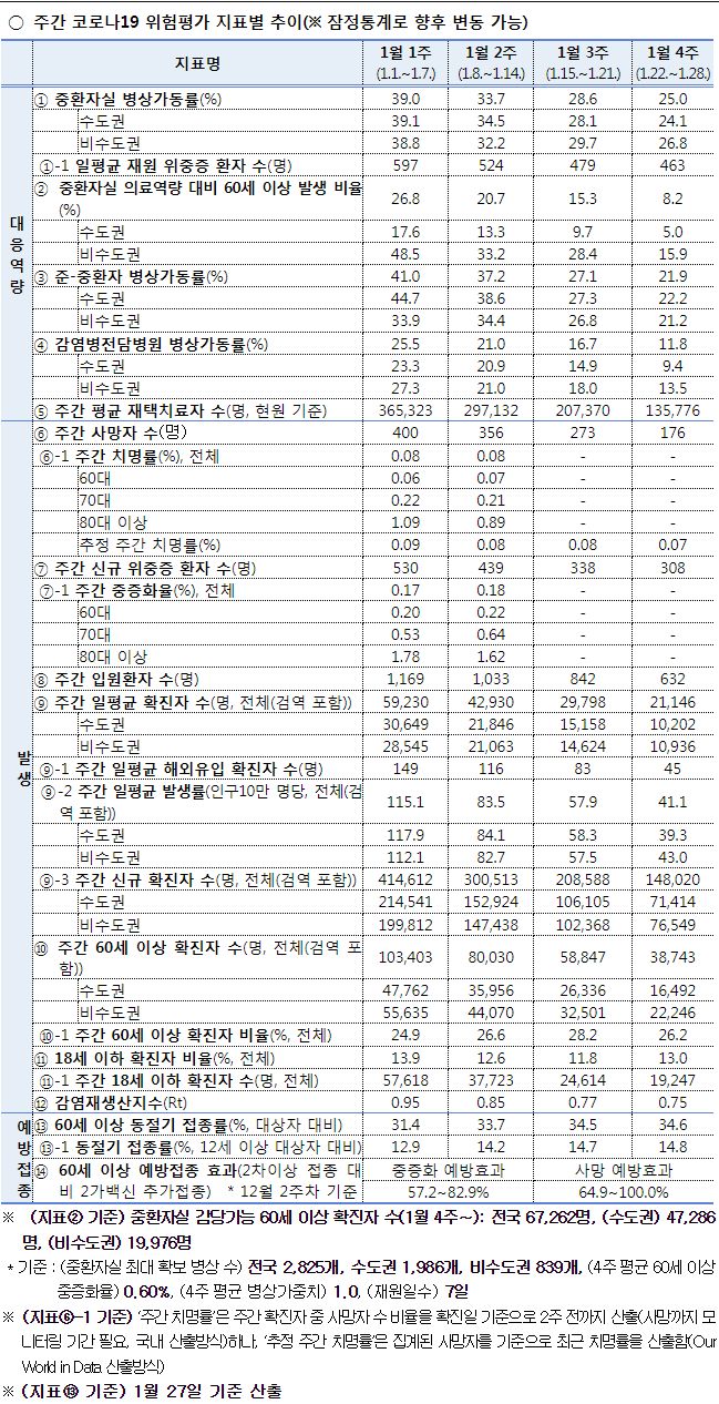 □ 코로나19 주간 발생 동향 및 위험도 평가(1.22~28.)
