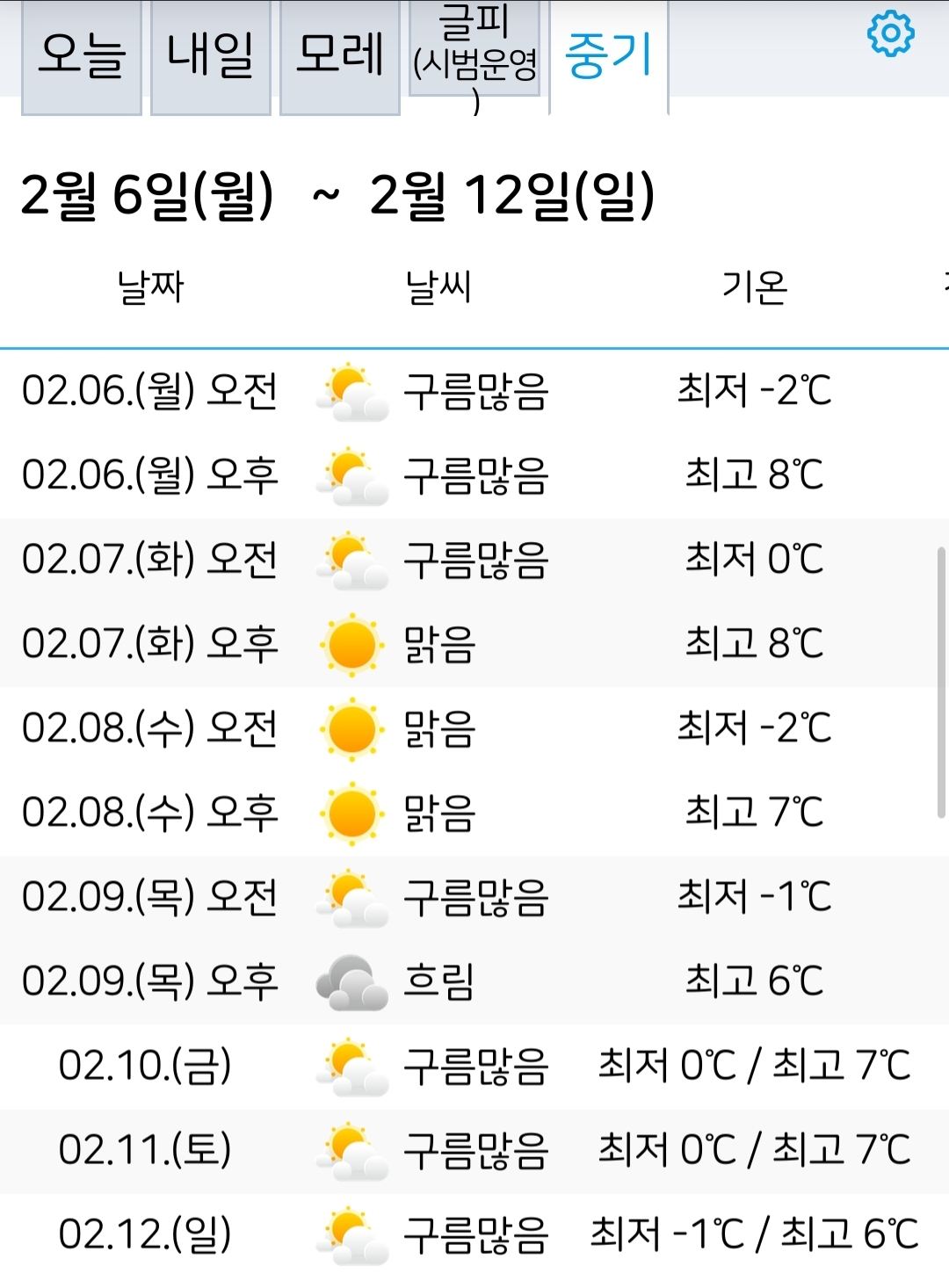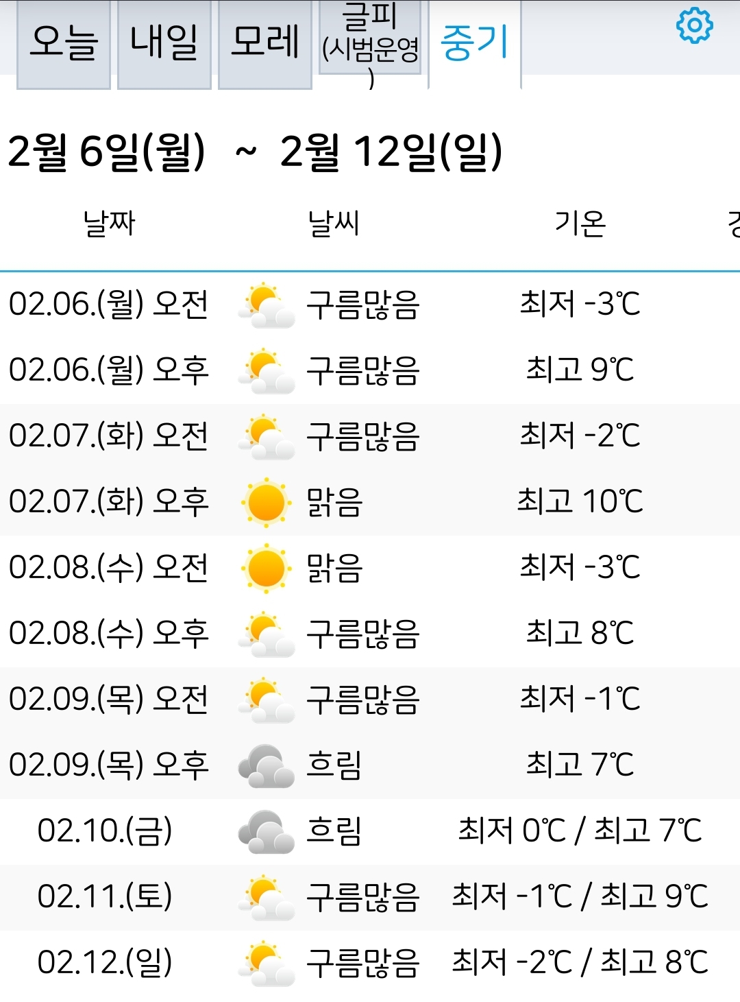 이번 주말(2.3)~다음 주말(2.12) 서울대전 날씨: 일평균기온 영상 등 본문