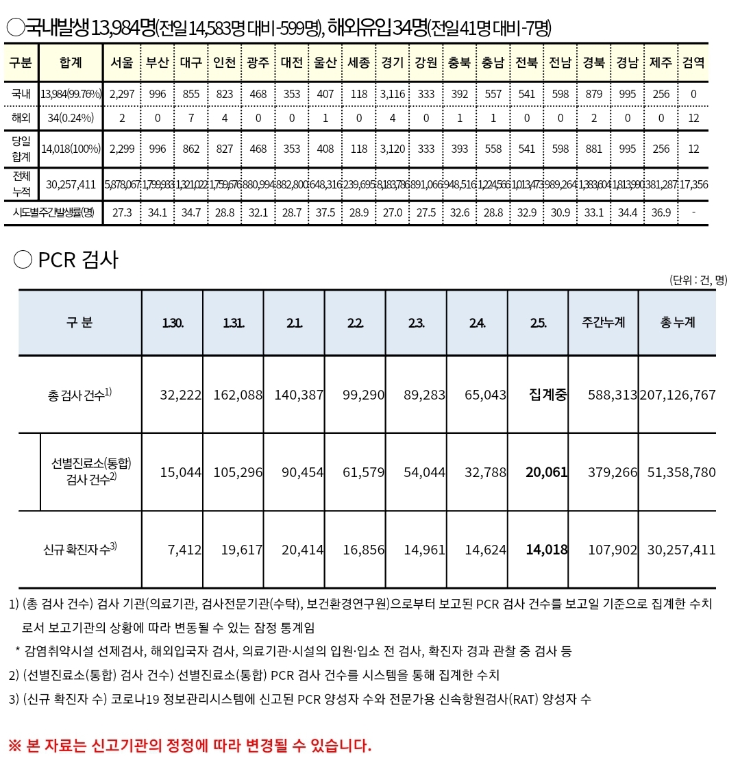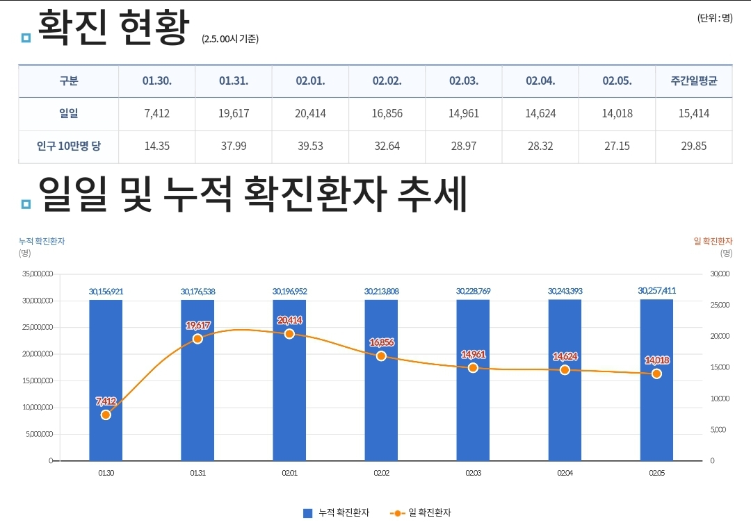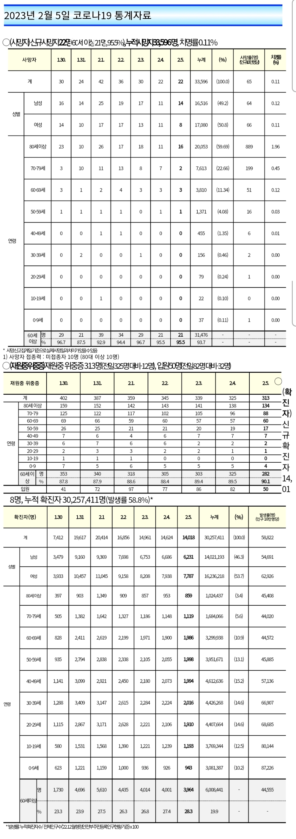 코로나19집계(2023.2.5. 0시기준) 확진 +1.4만, 사망 +22명 본문