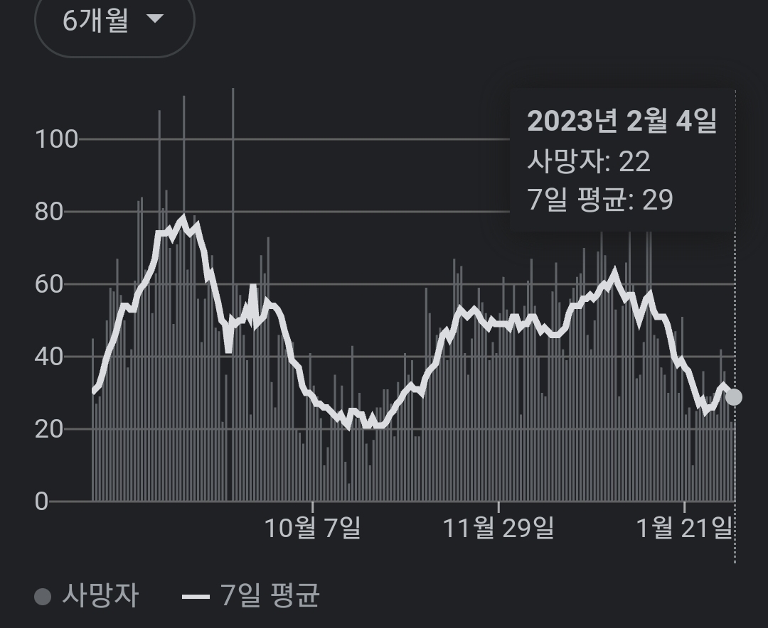 | 코로나19집계(2023.2.6. 0시기준) 확진 +6천, 사망 +18명, 중환자병상가동률 27% (0) | 2023.02.06 |
