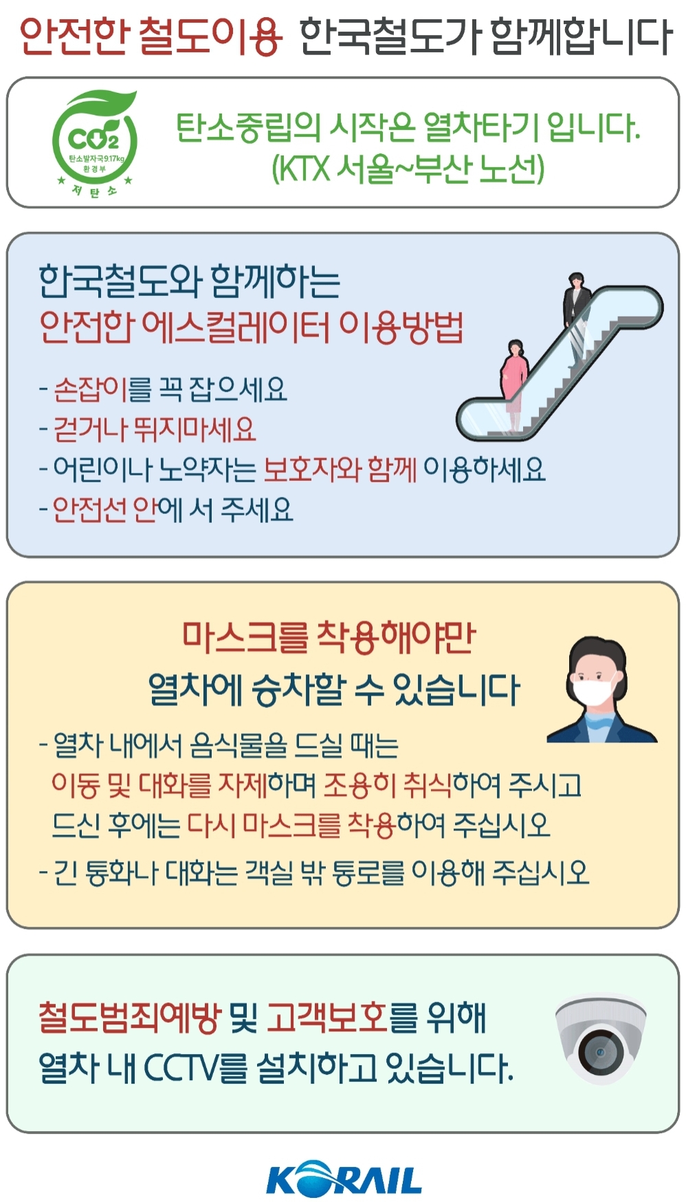 코레일, 열차는 마스크를 써야 승차가능. 차내에서는 먹을 수 있지만 바로 마스크쓸 것 본문