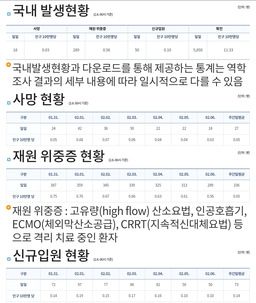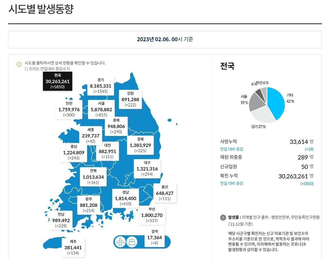 코로나19집계(2023.2.6. 0시기준) 확진 +6천, 사망 +18명, 중환자병상가동률 27% 본문