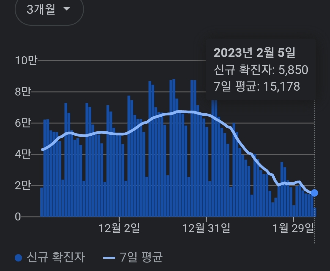 오늘부터 일일브리핑 보도자료는 나오지 않는다고 알고 있습니다. 아래는 구글그래프와 질병관리청 홈입니다.