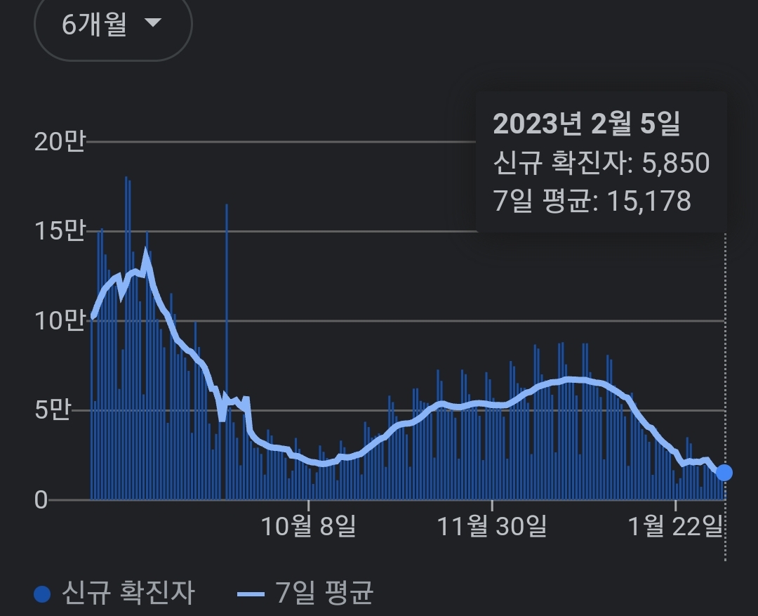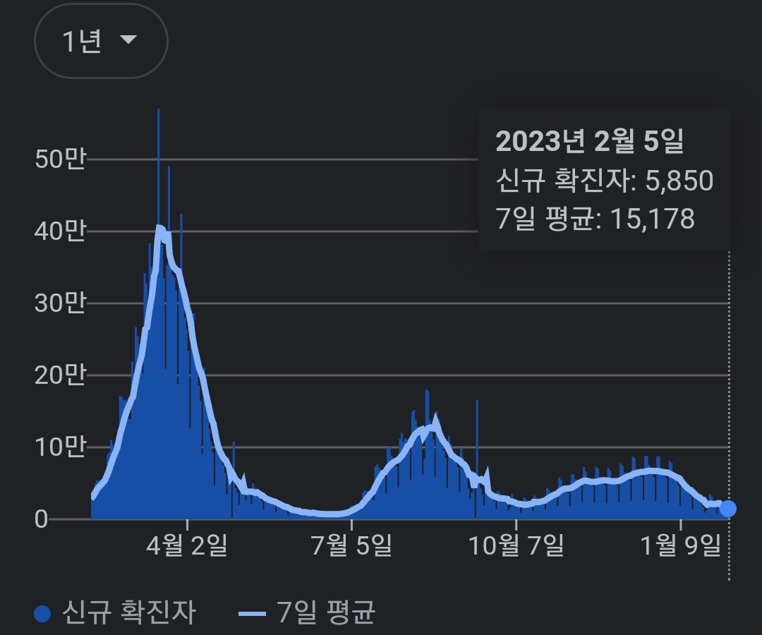 | 코로나19집계(2023.2.5. 0시기준) 확진 +1.4만, 사망 +22명 (0) | 2023.02.05 |