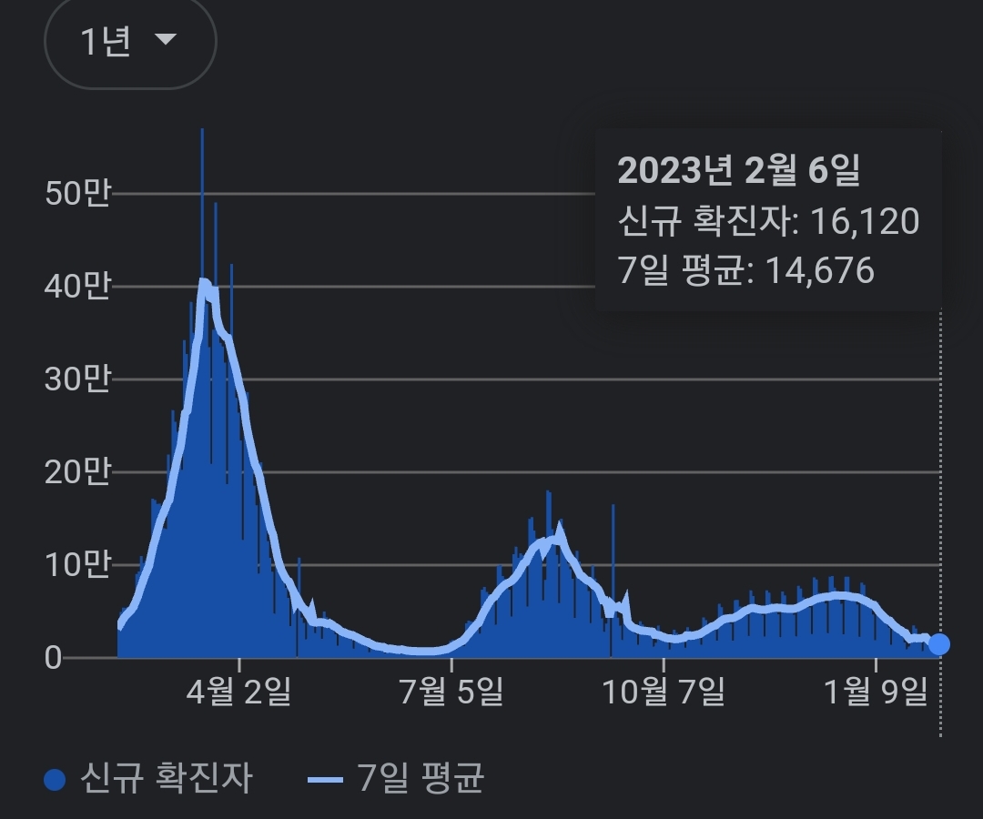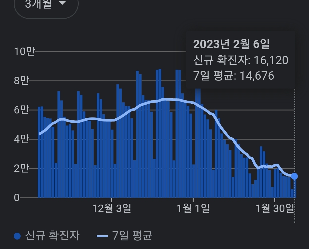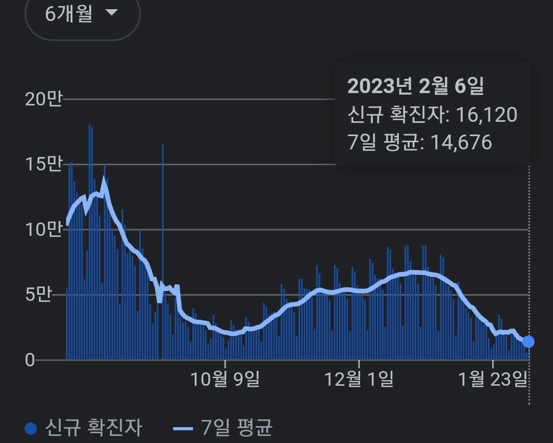 | 코로나19집계(2023.2.5. 0시기준) 확진 +1.4만, 사망 +22명 (0) | 2023.02.05 |